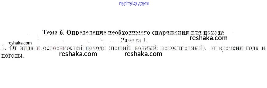 Представляем вам сборники по ОБЖ, с готовыми ответами к Рабочей тетради Демидов школьной программы для учеников шестой класса. Это не просто гдз с ответом, а с подсказками, как верно решить Работа 1 Тема 6. Определение необходимого снаряжения для похода 1. Проверяй домашку с умом и получай высший балл!
