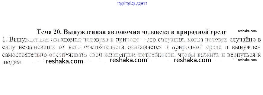 Представляем вам сборники по ОБЖ, с готовыми ответами к Рабочей тетради Демидов школьной программы для учеников шестой класса. Это не просто гдз с ответом, а с подсказками, как верно решить Тема 20. Вынужденная автономия человека в природной среде 1. Проверяй домашку с умом и получай высший балл!