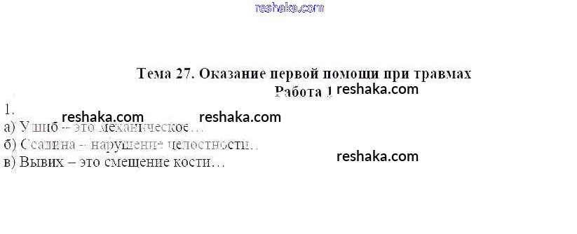 Представляем вам сборники по ОБЖ, с готовыми ответами к Рабочей тетради Демидов школьной программы для учеников шестой класса. Это не просто гдз с ответом, а с подсказками, как верно решить Работа 1 Тема 27. Оказание первой помощи при травмах 1. Проверяй домашку с умом и получай высший балл!