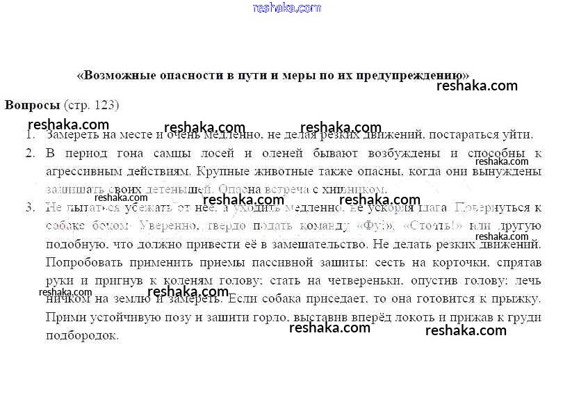Решака - онлайн ответы ОБЖ Фролов, Шолох за 6 класс Учебник ФГОС 2017 - 123