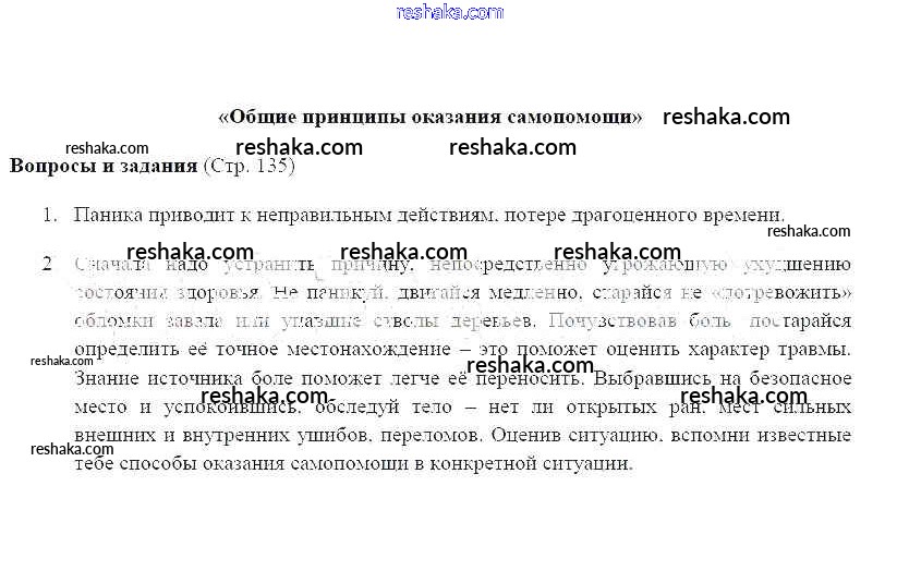 Решака - онлайн ответы ОБЖ Фролов, Шолох за 6 класс Учебник ФГОС 2017 - 135
