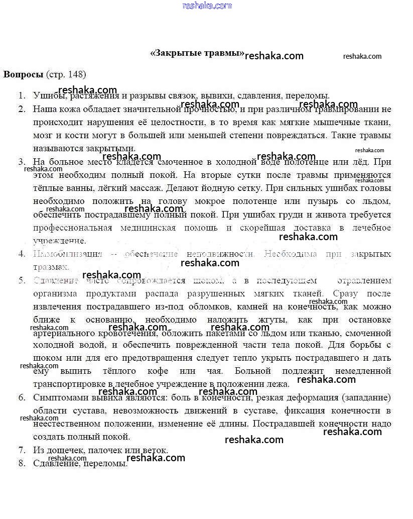 Решака - онлайн ответы ОБЖ Фролов, Шолох за 6 класс Учебник ФГОС 2017 - 148