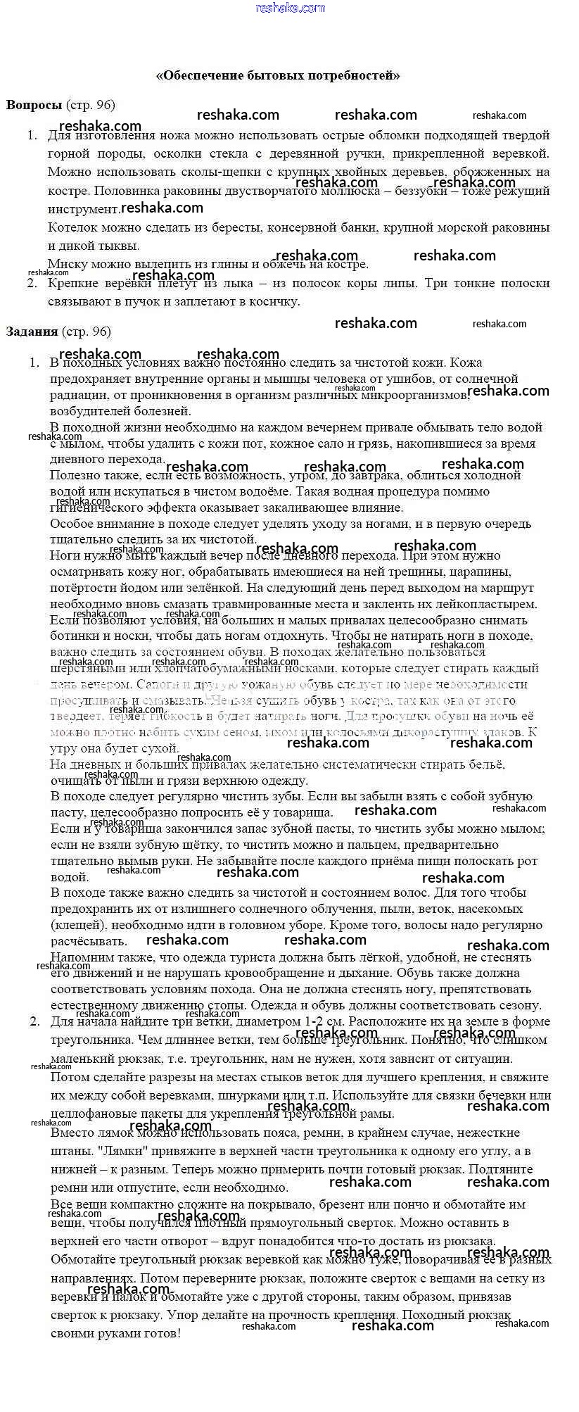 Решака - онлайн ответы ОБЖ Фролов, Шолох за 6 класс Учебник ФГОС 2017 - 96