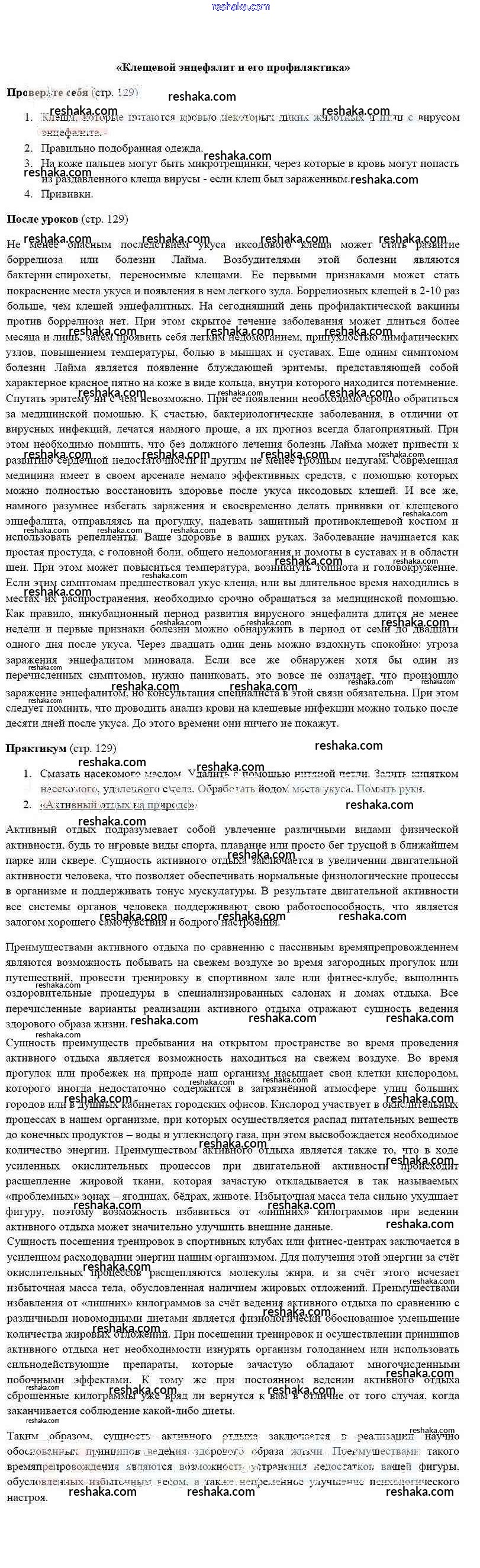 Решака - онлайн ответы ОБЖ Смирнов, Хренников за 6 класс Учебник ФГОС 2018 - 129
