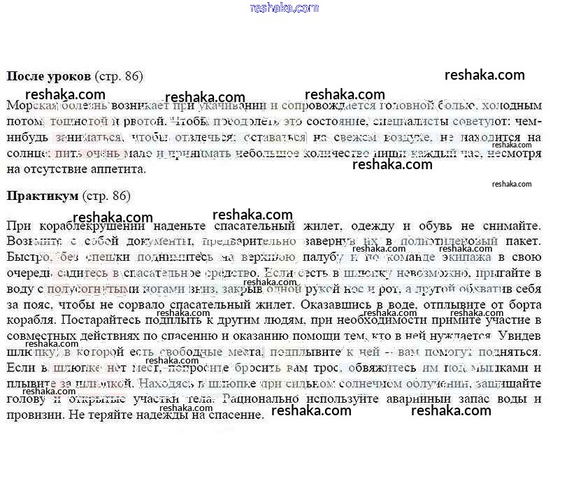 Решака - онлайн ответы ОБЖ Смирнов, Хренников за 6 класс Учебник ФГОС 2018 - 86