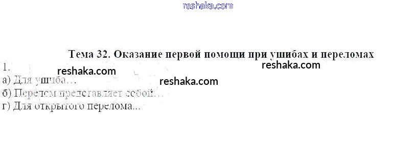 Представляем вам сборники по ОБЖ, с готовыми ответами к Рабочей тетради Демидов школьной программы для учеников седьмой класса. Это не просто гдз с ответом, а с подсказками, как верно решить Тема 32. Оказание первой помощи при ушибах и переломах 1. Проверяй домашку с умом и получай высший балл!