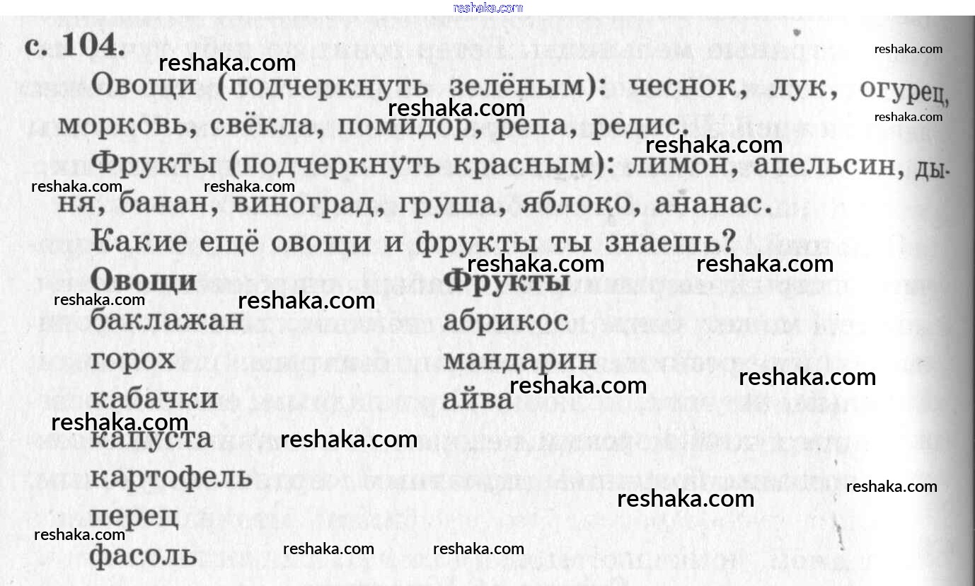 Решака - онлайн ответы Окружающий мир Плешаков за 1 класс Учебник ФГОС 2007 - 104