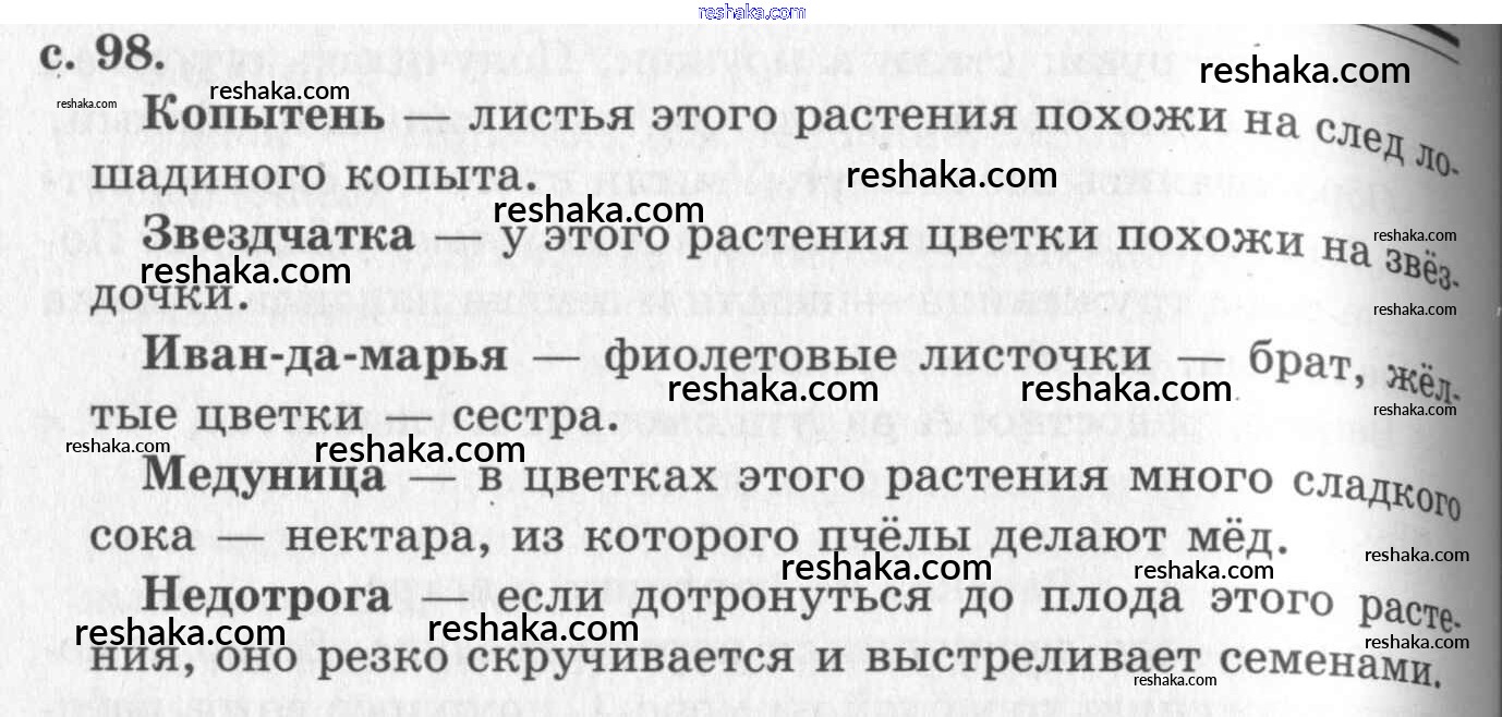 Решака - онлайн ответы Окружающий мир Плешаков за 1 класс Учебник ФГОС 2007 - 98