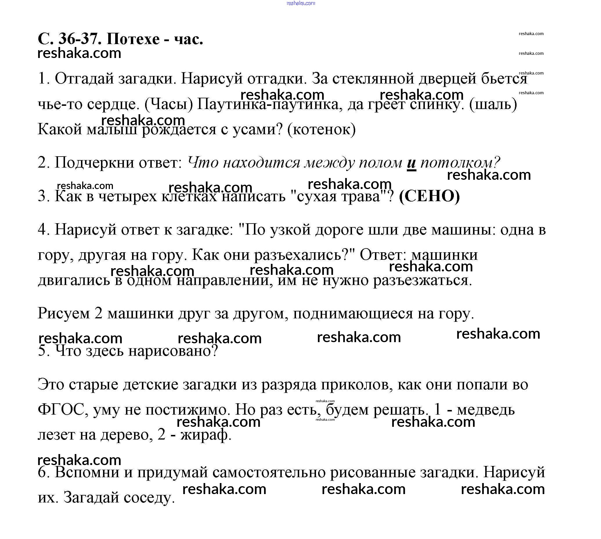 Решака - онлайн ответы Окружающий мир Плешаков, Новицкая за 1 класс Рабочая тетрадь ФГОС 2016 - 36-37