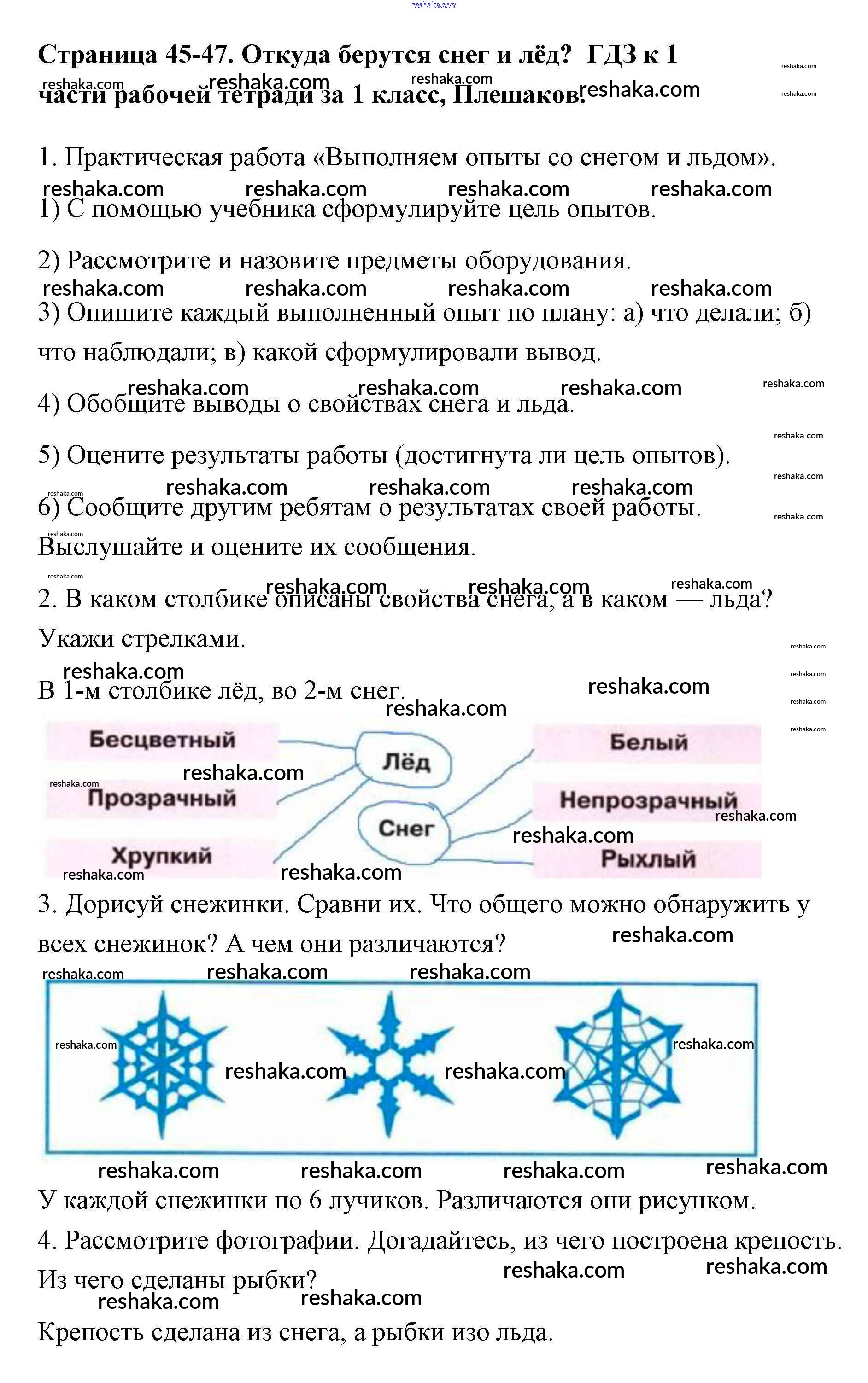 Решака - онлайн ответы Окружающий мир Плешаков за 1 класс Рабочая тетрадь ФГОС 2016 - 45-47