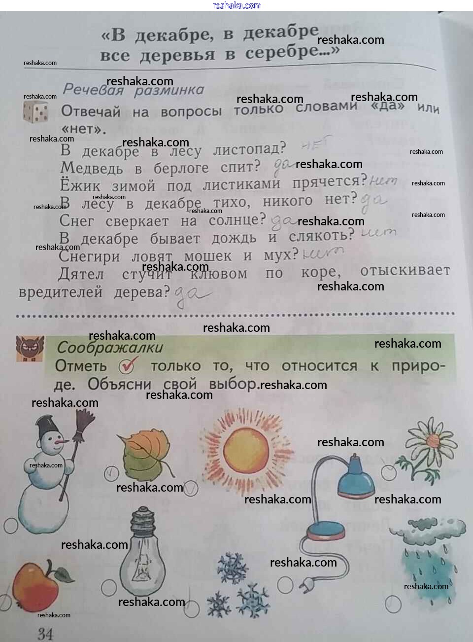 Решака - онлайн ответы Окружающий мир Виноградова за 1 класс Рабочая тетрадь ФГОС 2017 - 34
