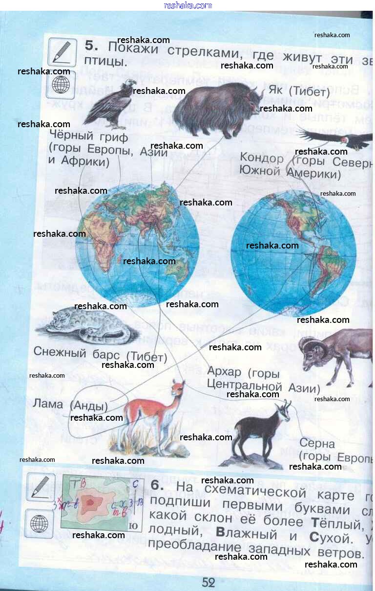 Представляем вам сборники по Окружающему миру, с готовыми ответами к Рабочей тетради Вахрушев школьной программы для учеников второй класса. Это не просто гдз с ответом, а с подсказками, как верно решить Тема 25. Горные экосистемы стр. 52. Проверяй домашку с умом и получай высший балл!