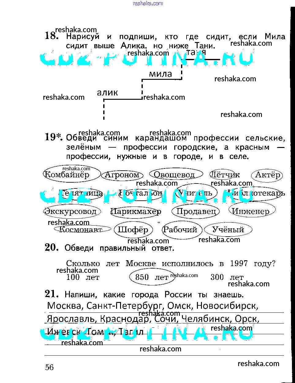 Решака - онлайн ответы Окружающий мир Виноградова за 2 класс Рабочая тетрадь 2017 - 56