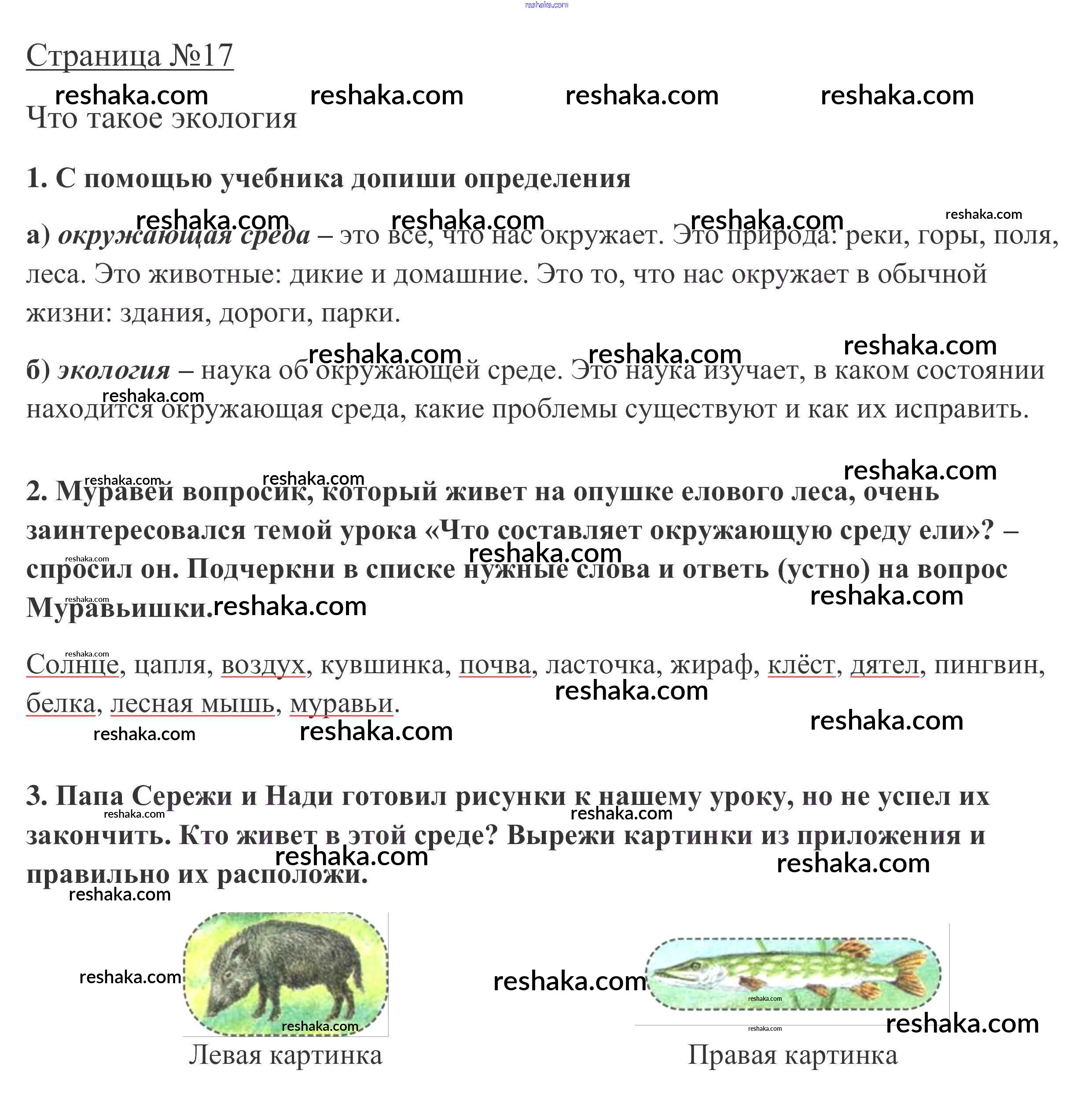 Решака - онлайн ответы Окружающий мир Плешаков за 3 класс Рабочая тетрадь ФГОС 2017 - 17