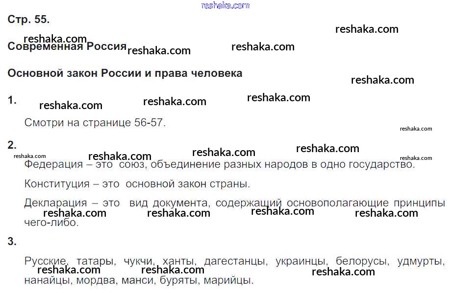 Представляем вам сборники по Окружающему миру, с готовыми ответами к Рабочей тетради Плешаков школьной программы для учеников четвертый класса. Это не просто гдз с ответом, а с подсказками, как верно решить Часть 2. Страницы 55. Проверяй домашку с умом и получай высший балл!