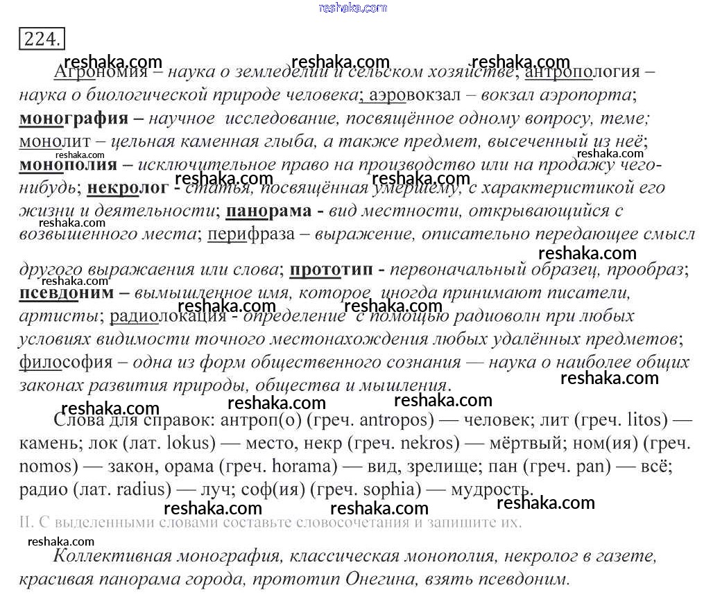 Решака - онлайн ответы Русский язык Греков, Крючков за 10-11 класс Учебник 2016 - 224