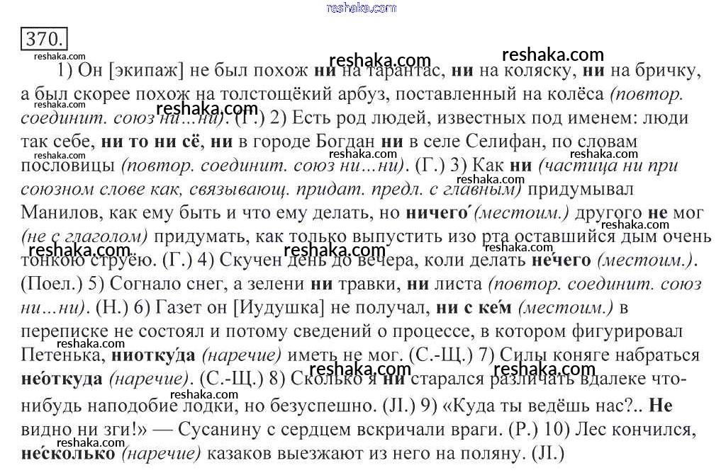 Решака - онлайн ответы Русский язык Греков, Крючков за 10-11 класс Учебник 2016 - 370