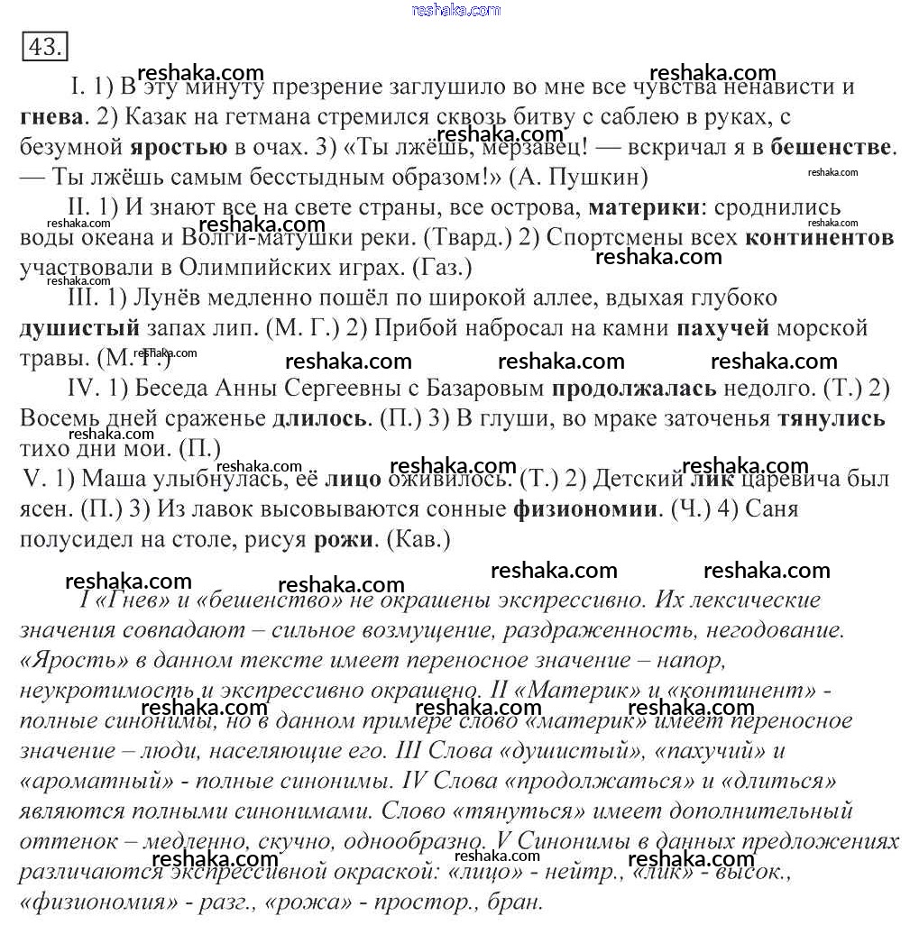 Решака - онлайн ответы Русский язык Греков, Крючков за 10-11 класс Учебник 2016 - 43