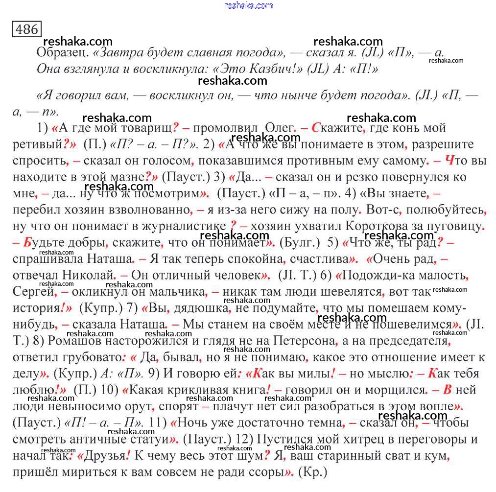 Решака - онлайн ответы Русский язык Греков, Крючков за 10-11 класс Учебник 2016 - 486