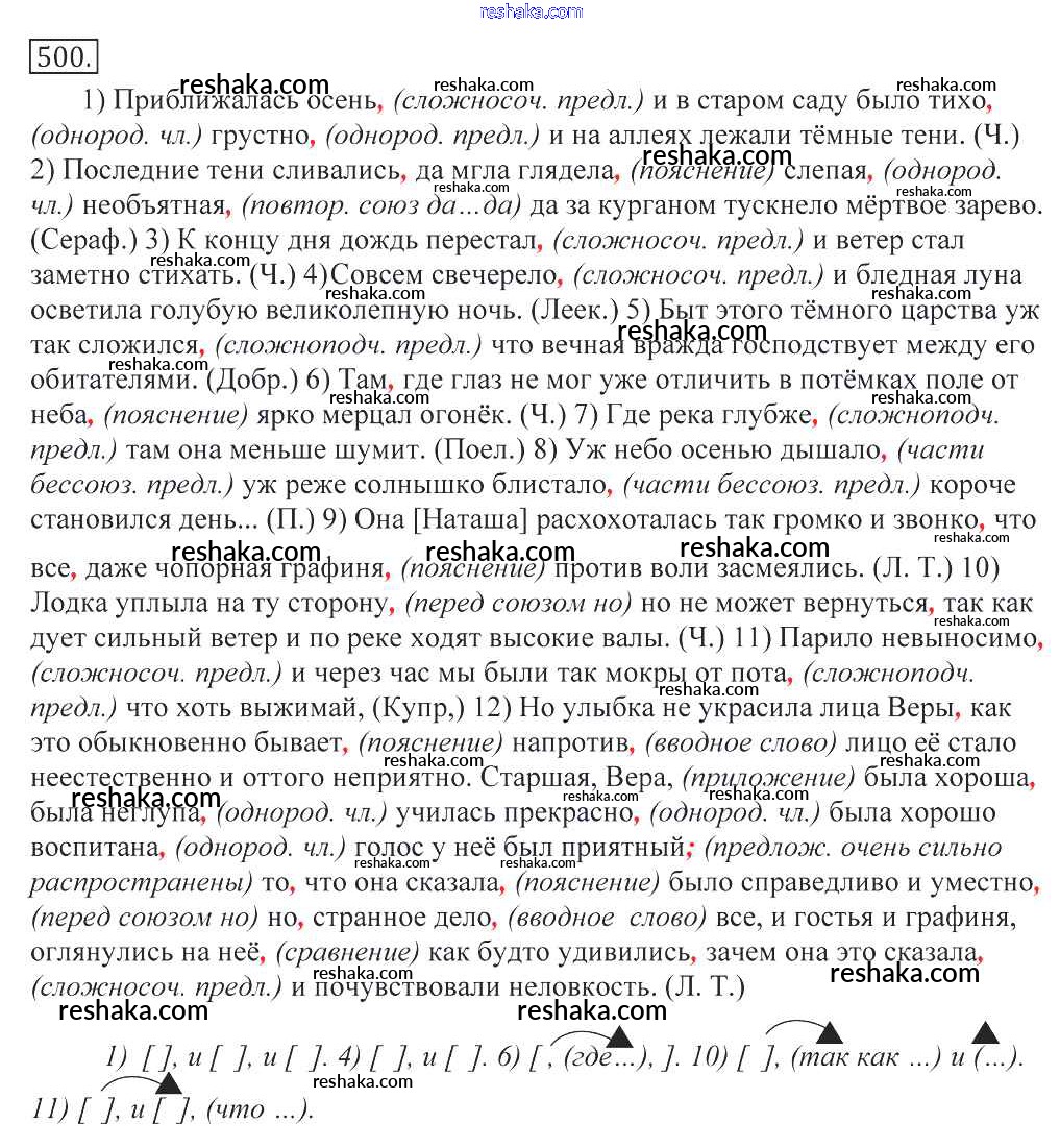 Решака - онлайн ответы Русский язык Греков, Крючков за 10-11 класс Учебник 2016 - 500