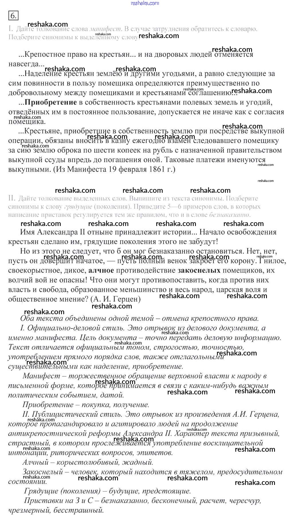 Решака - онлайн ответы Русский язык Греков, Крючков за 10-11 класс Учебник 2016 - 6