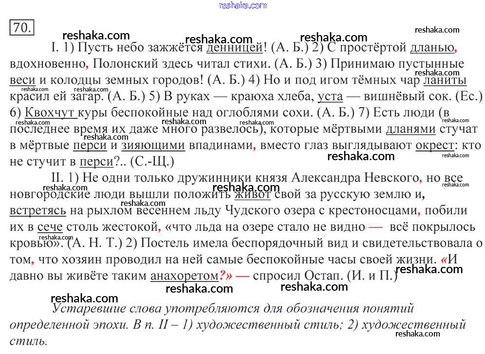 Решака - онлайн ответы Русский язык Греков, Крючков за 10-11 класс Учебник 2016 - 70