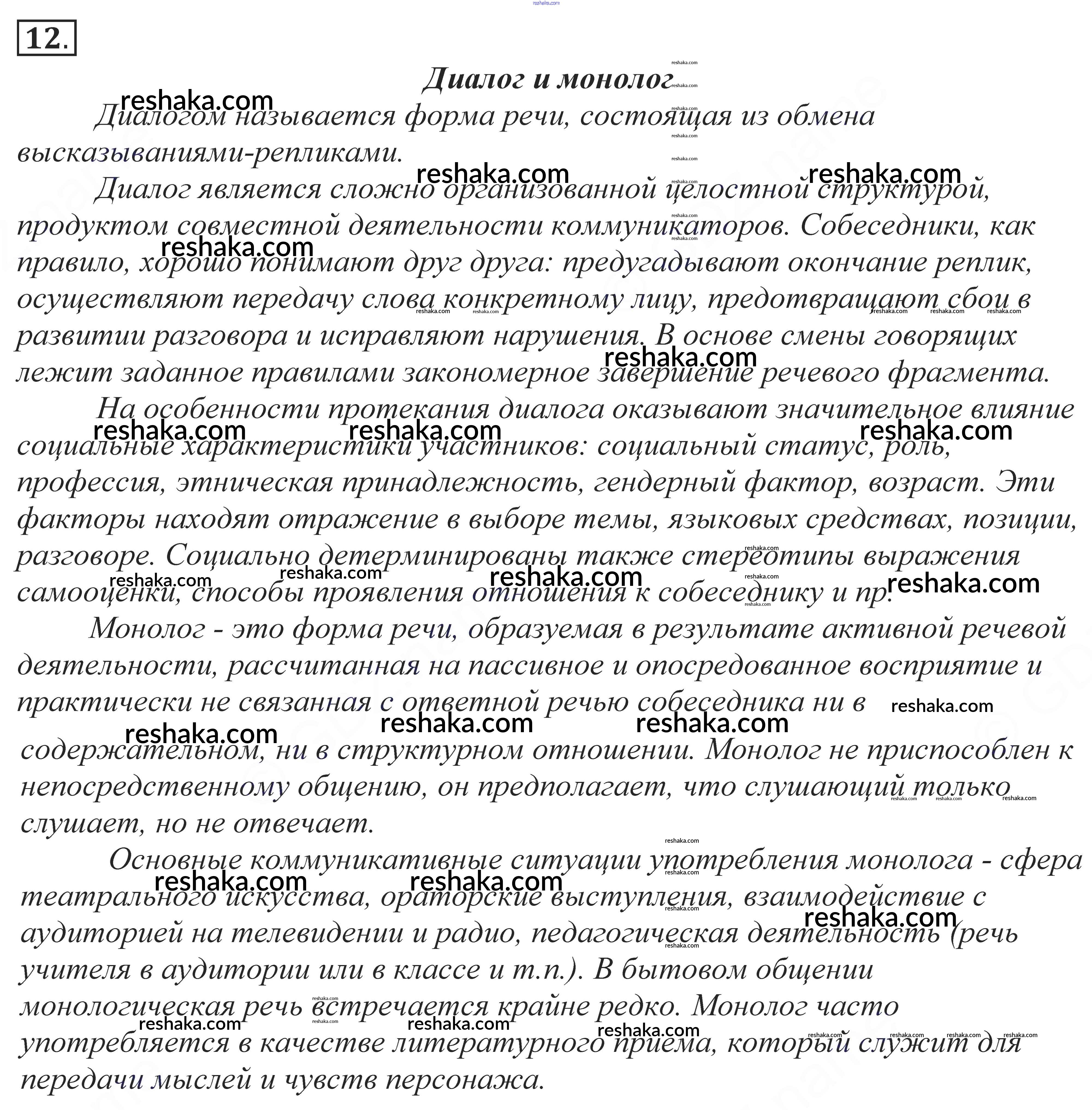 Решака - онлайн ответы Русский язык Власенков, Рыбченкова за 10-11 класс Учебник Базовый уровень 2014 - 12
