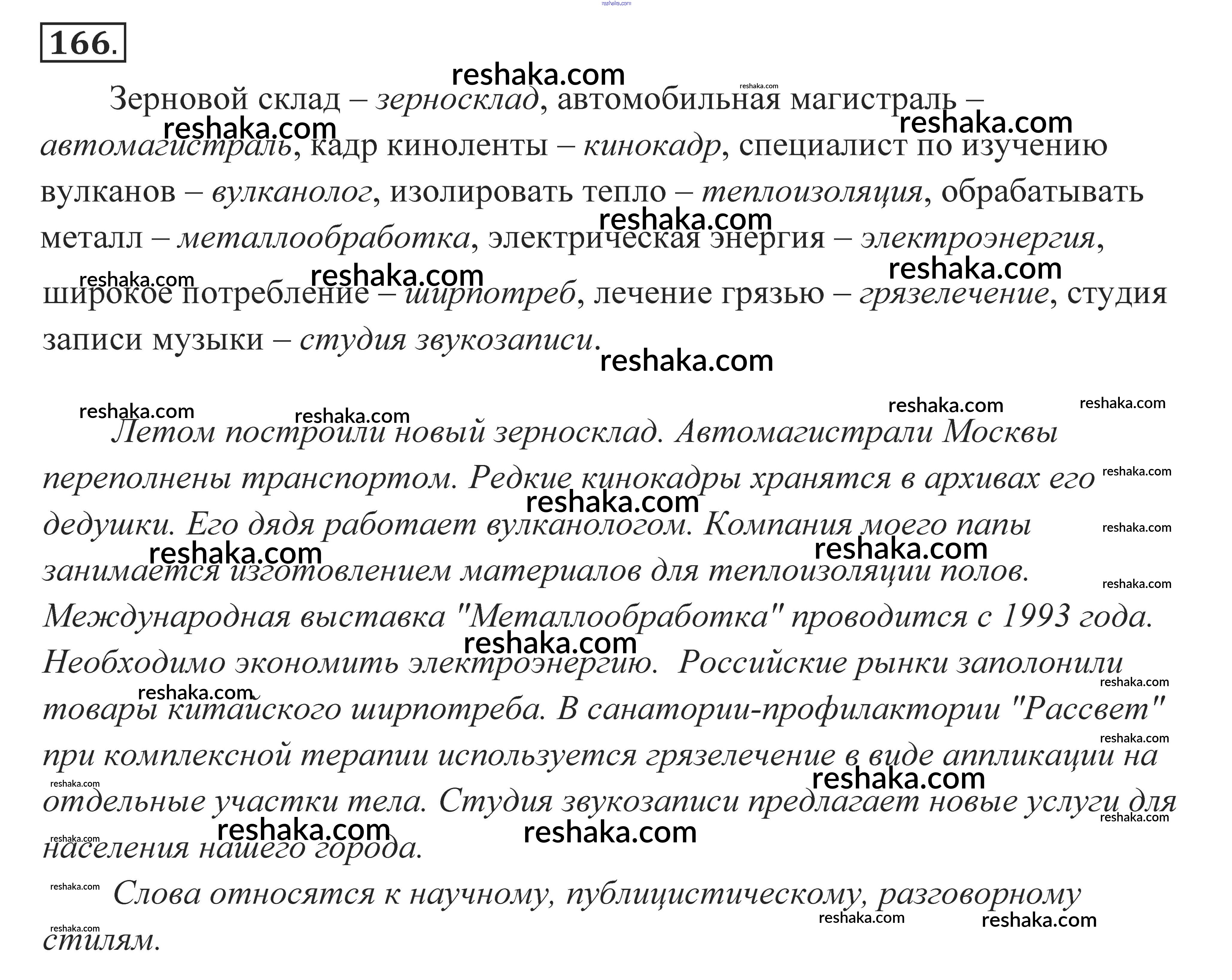 Решака - онлайн ответы Русский язык Власенков, Рыбченкова за 10-11 класс Учебник Базовый уровень 2014 - 166