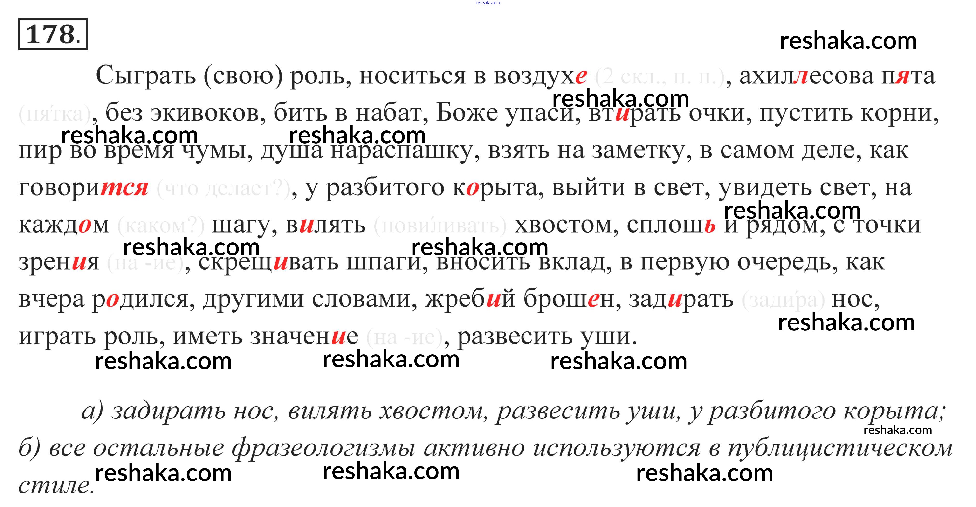 Представляем вам сборники по Русскому языку, с готовыми ответами к Учебнику Власенков школьной программы для учеников десятый-одиннадцатый класса. Это не просто гдз с ответом, а с подсказками, как верно решить Упражнения 178. Проверяй домашку с умом и получай высший балл!