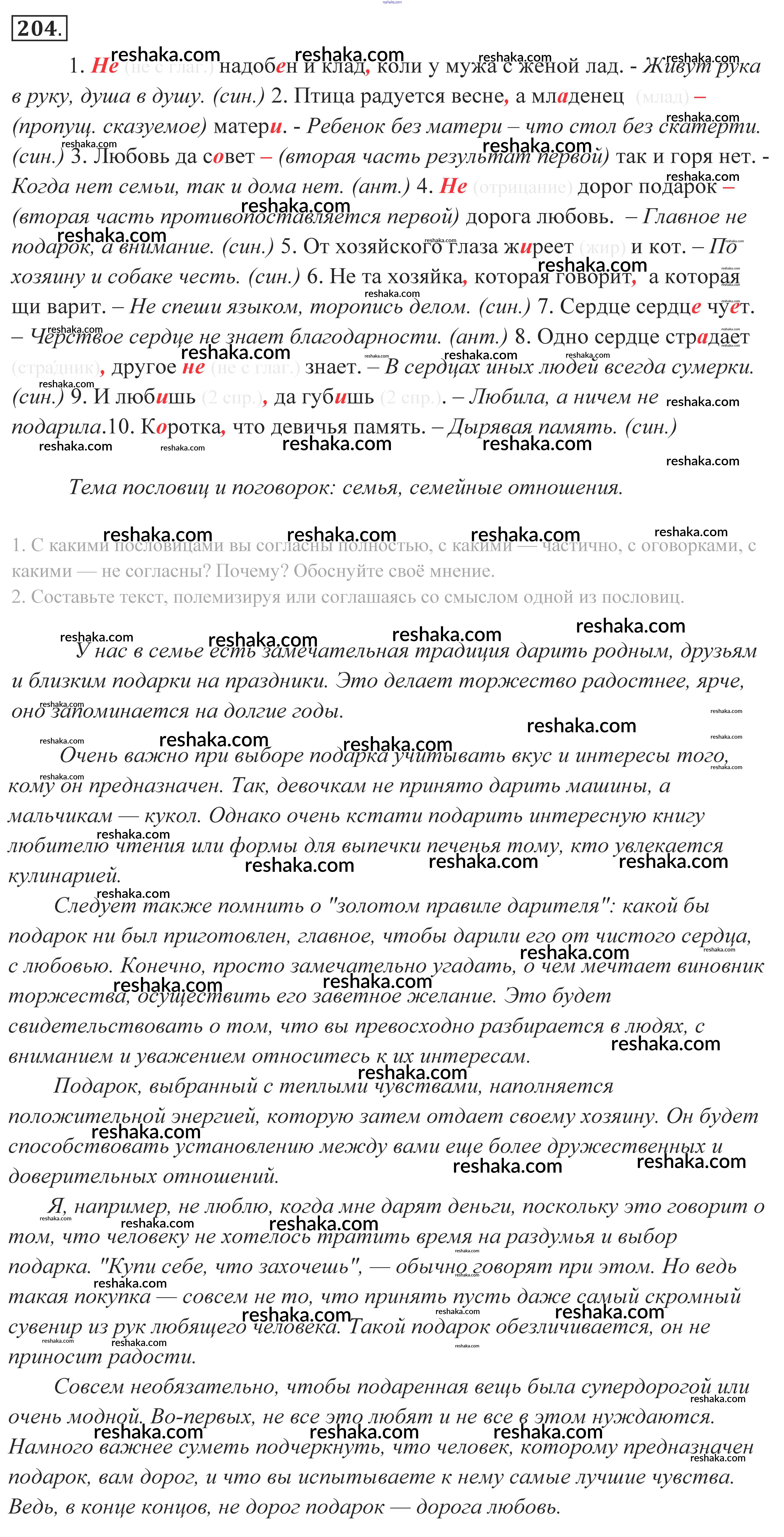 Решака - онлайн ответы Русский язык Власенков, Рыбченкова за 10-11 класс Учебник Базовый уровень 2014 - 204