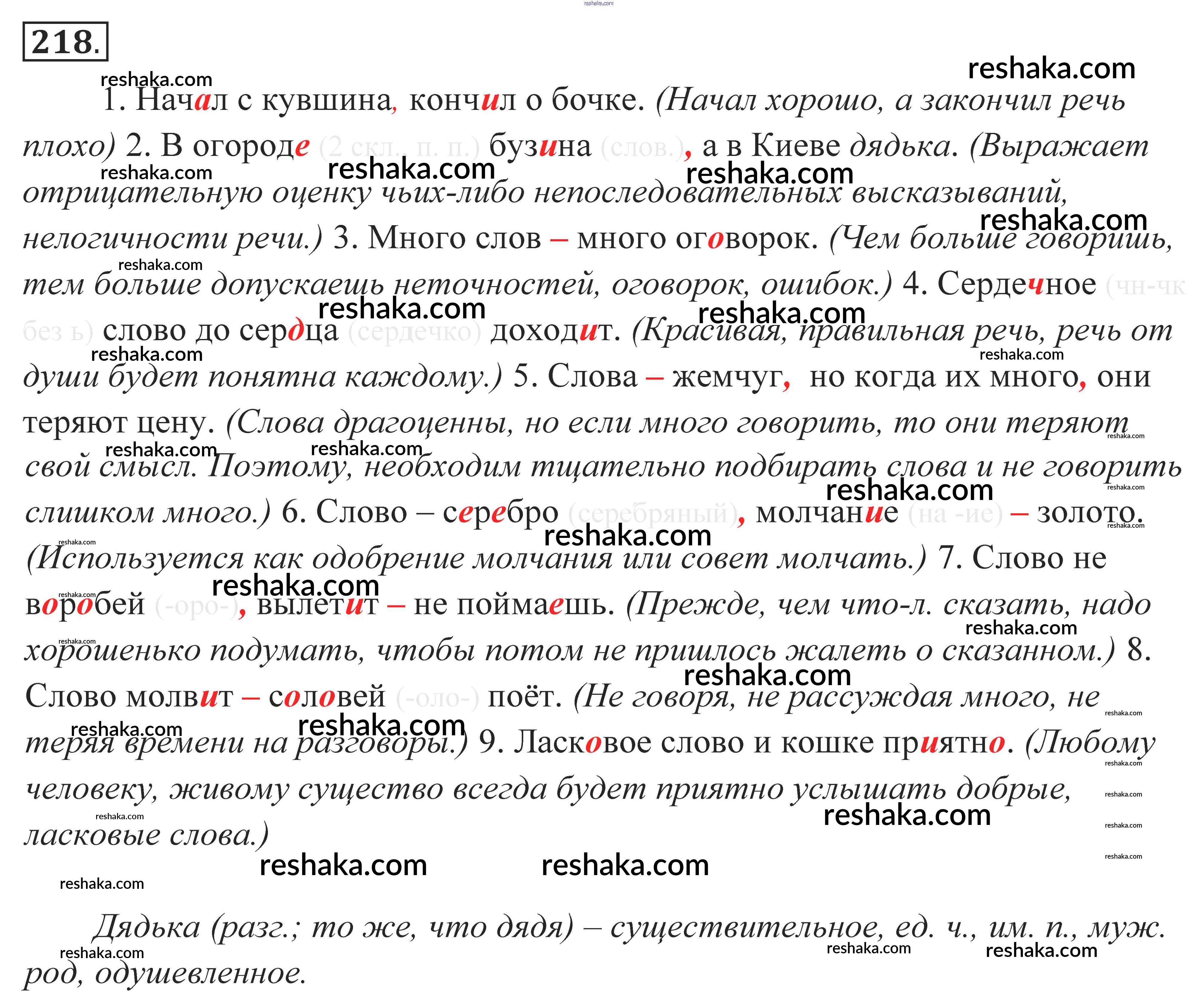 Решака - онлайн ответы Русский язык Власенков, Рыбченкова за 10-11 класс Учебник Базовый уровень 2014 - 218