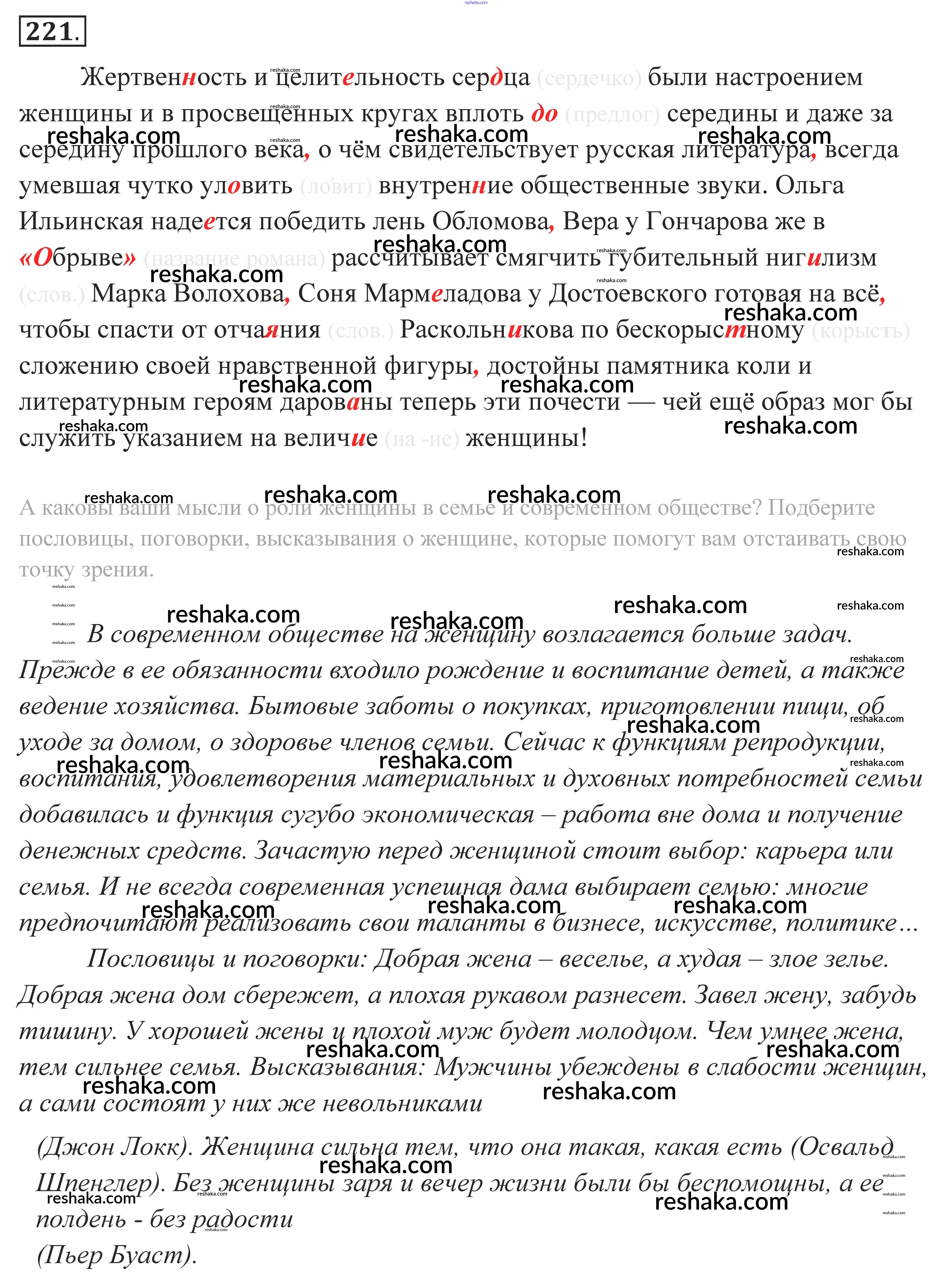 Решака - онлайн ответы Русский язык Власенков, Рыбченкова за 10-11 класс Учебник Базовый уровень 2014 - 221