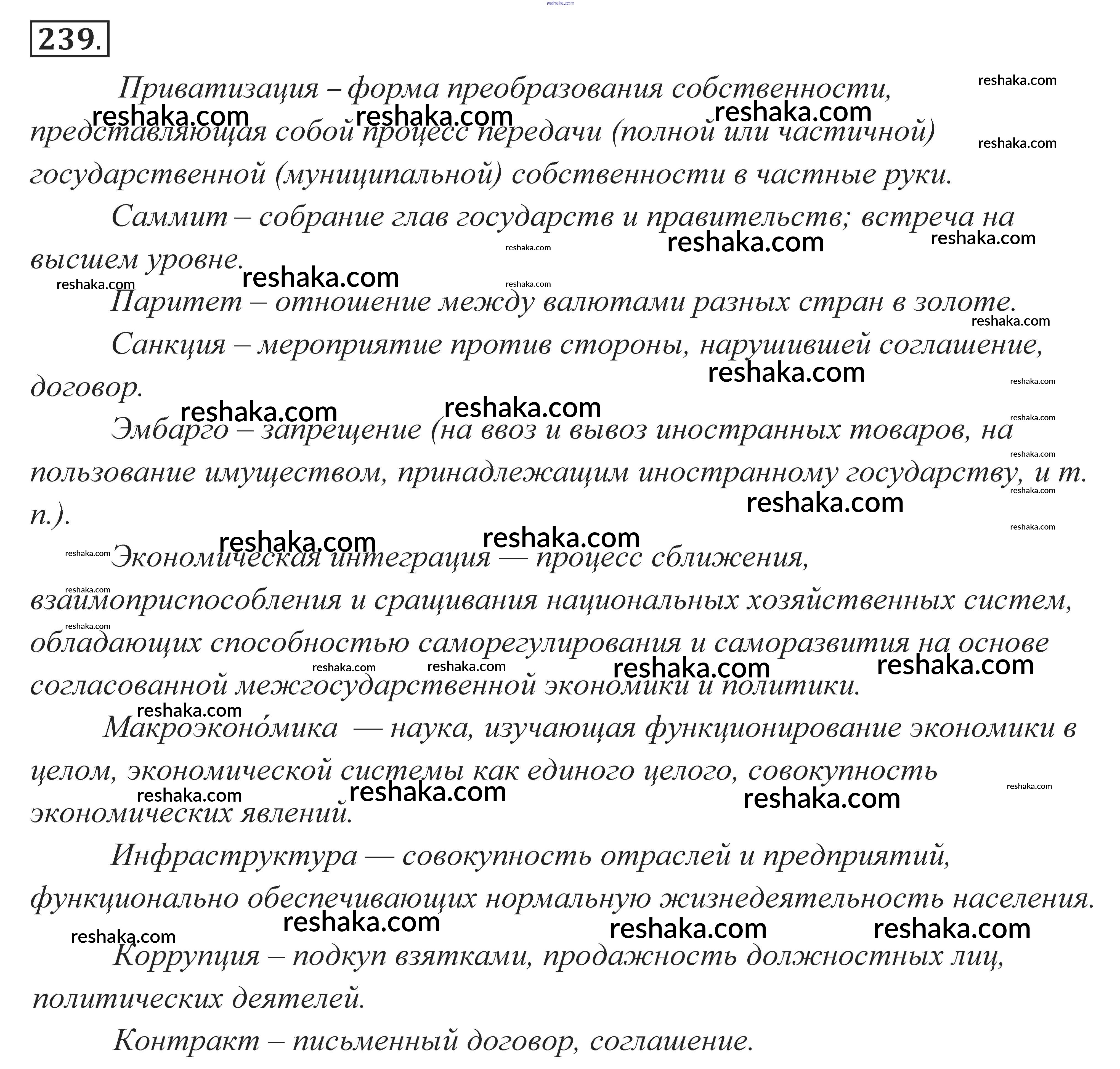 Решака - онлайн ответы Русский язык Власенков, Рыбченкова за 10-11 класс Учебник Базовый уровень 2014 - 239