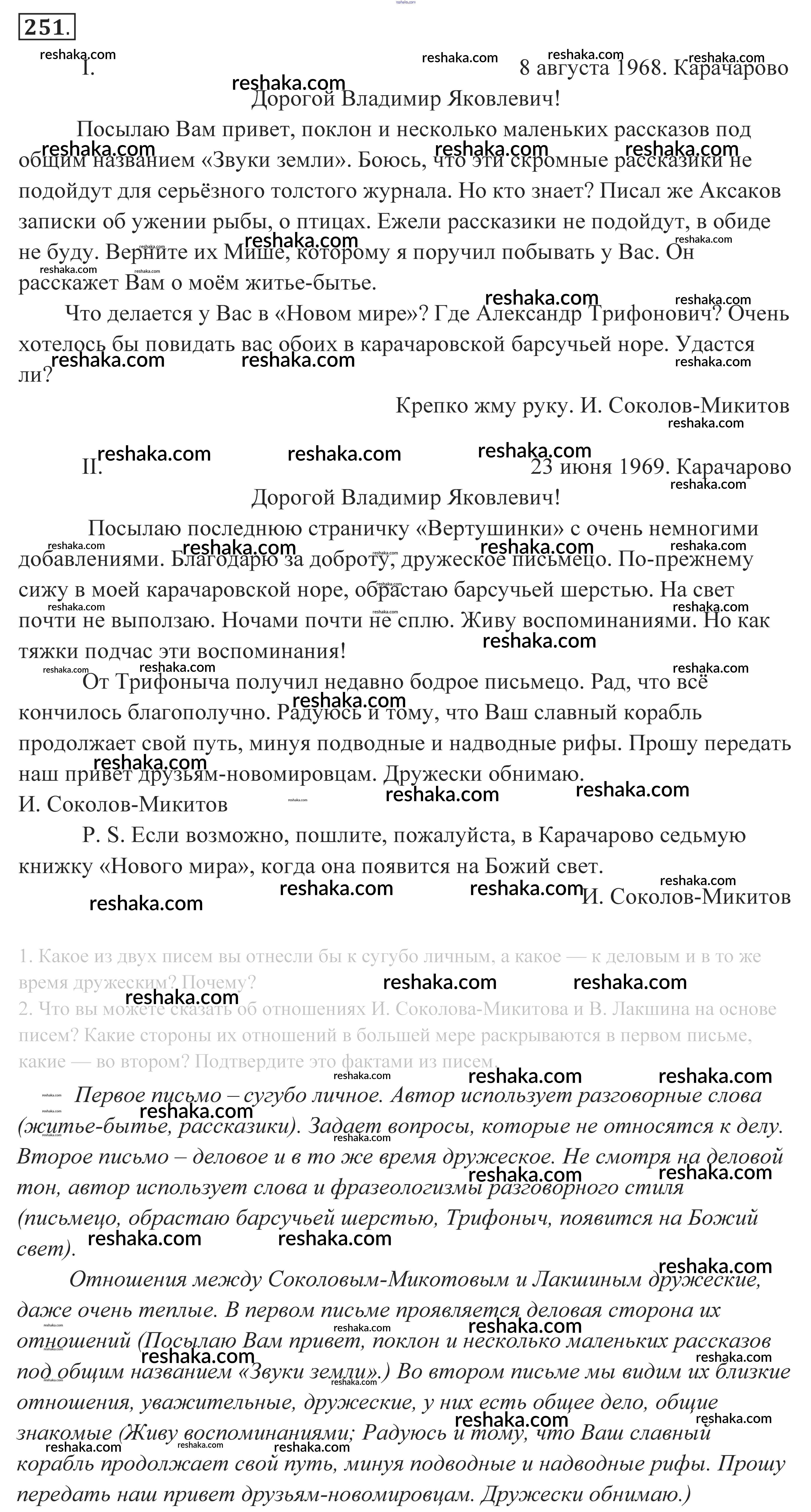Решака - онлайн ответы Русский язык Власенков, Рыбченкова за 10-11 класс Учебник Базовый уровень 2014 - 251