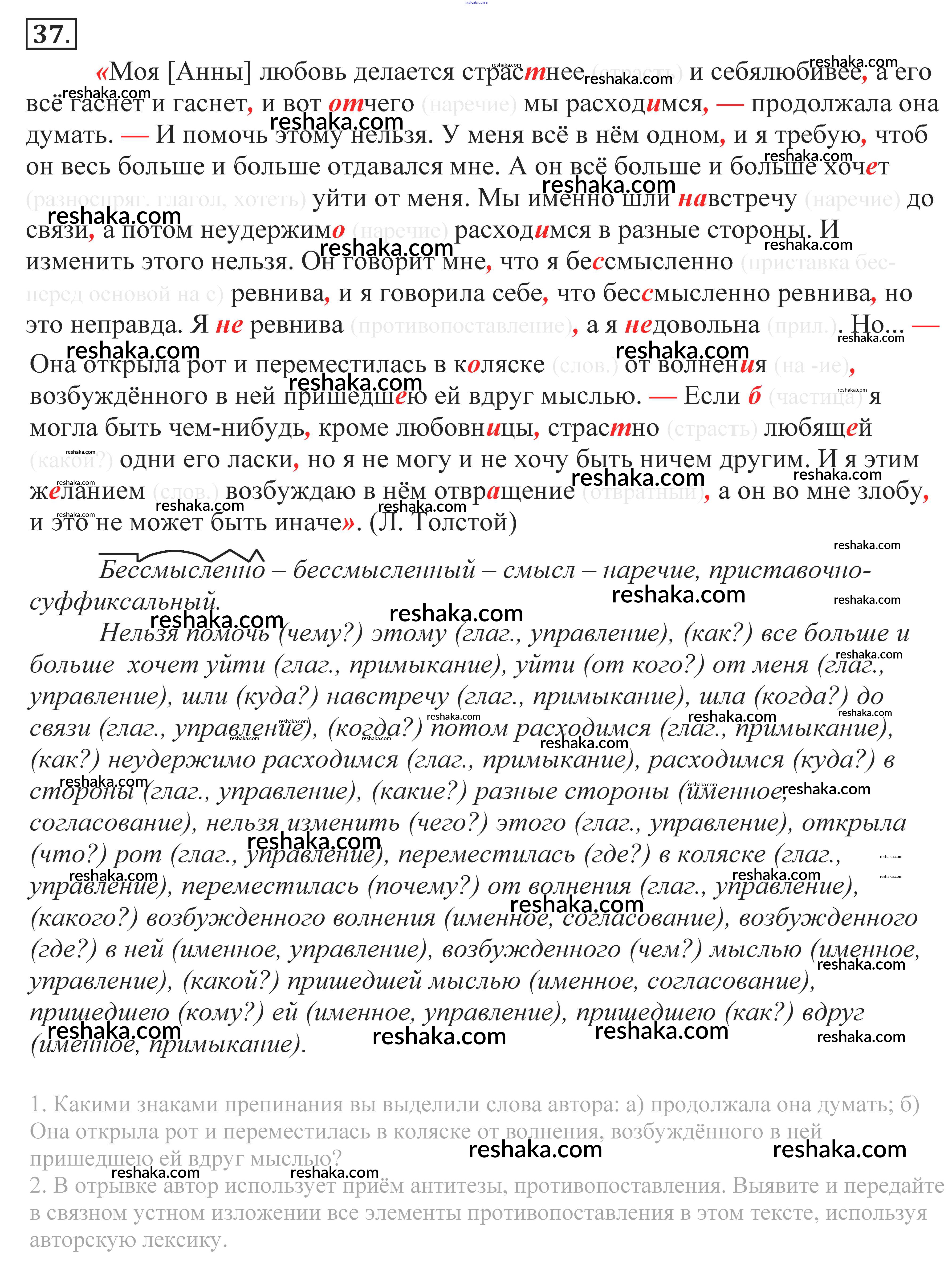 Решака - онлайн ответы Русский язык Власенков, Рыбченкова за 10-11 класс Учебник Базовый уровень 2014 - 37