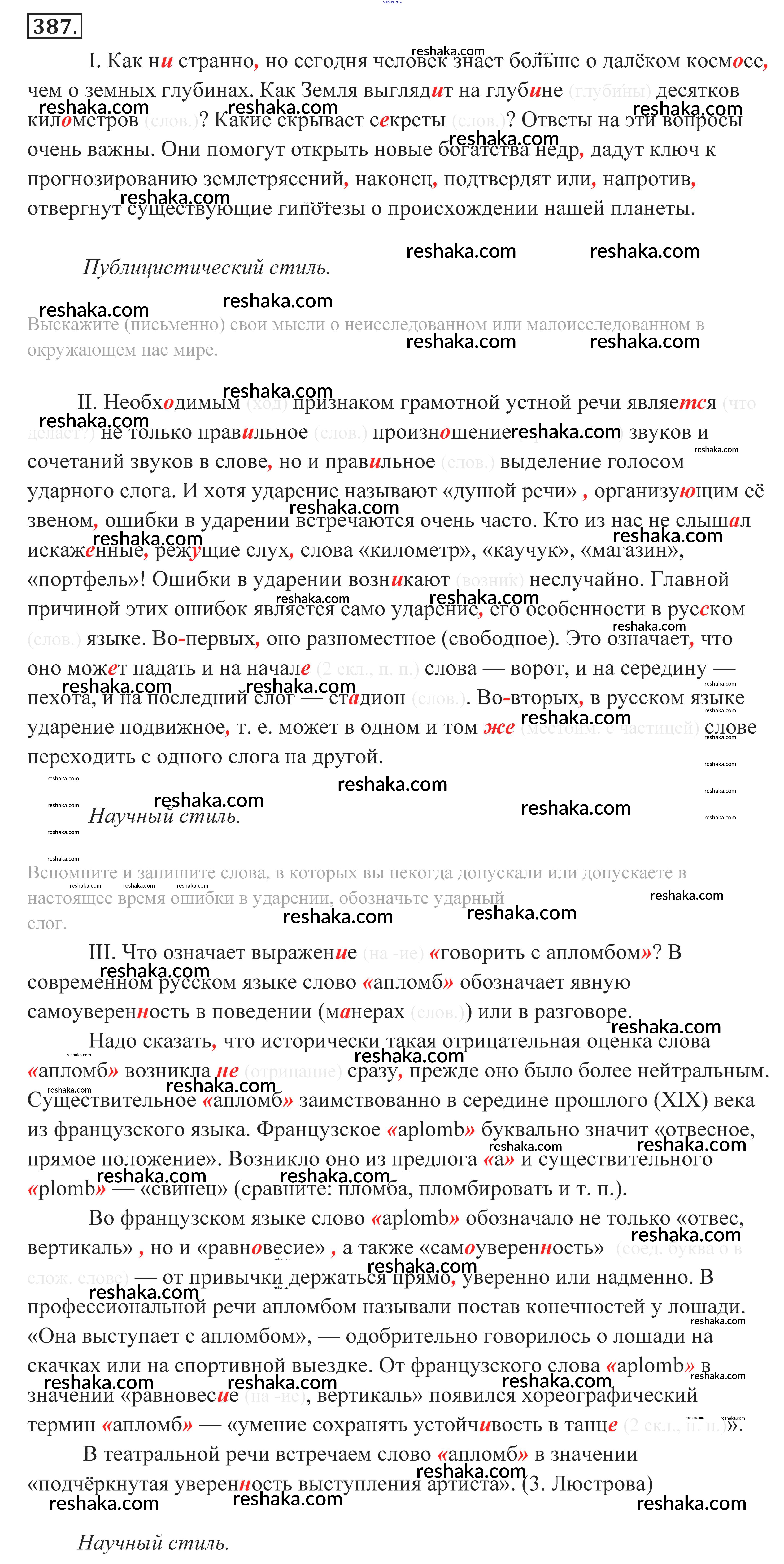 Решака - онлайн ответы Русский язык Власенков, Рыбченкова за 10-11 класс Учебник Базовый уровень 2014 - 387