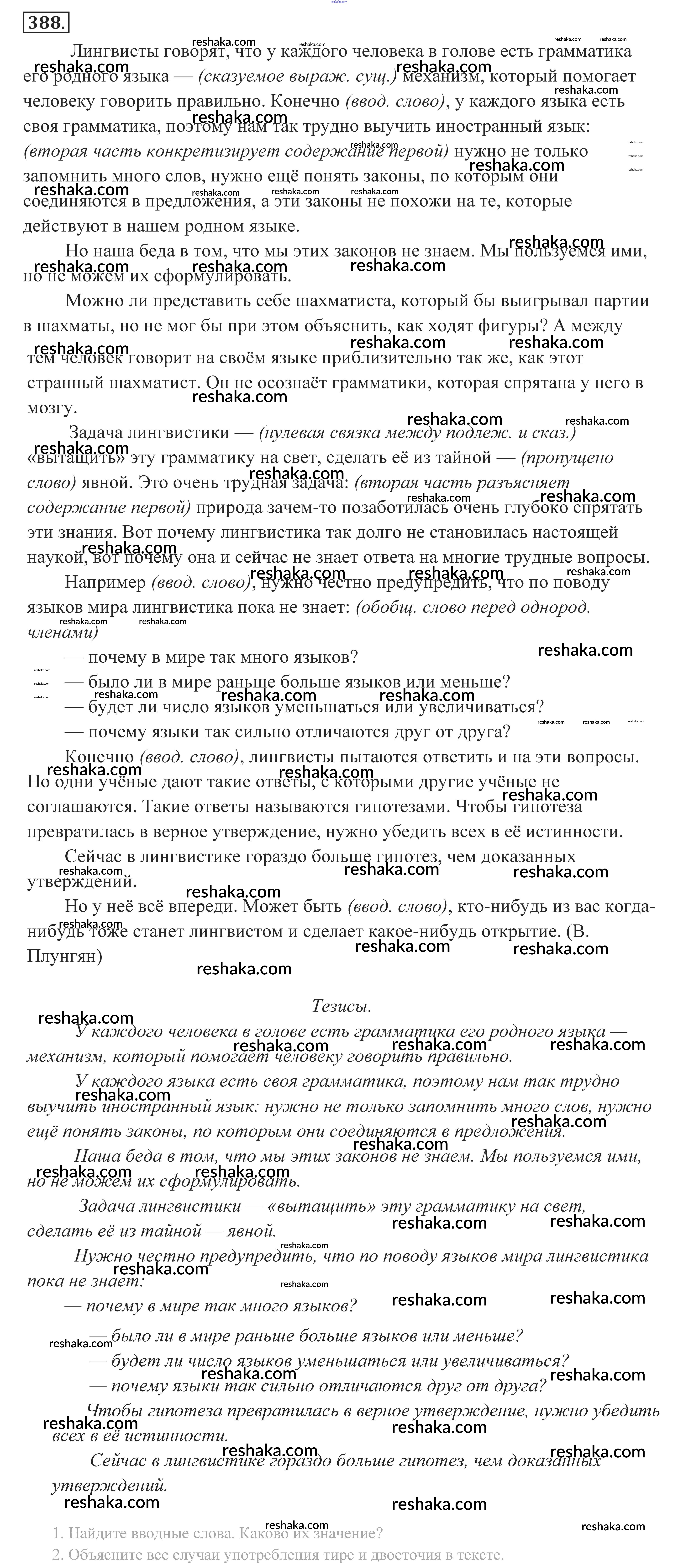 Решака - онлайн ответы Русский язык Власенков, Рыбченкова за 10-11 класс Учебник Базовый уровень 2014 - 388