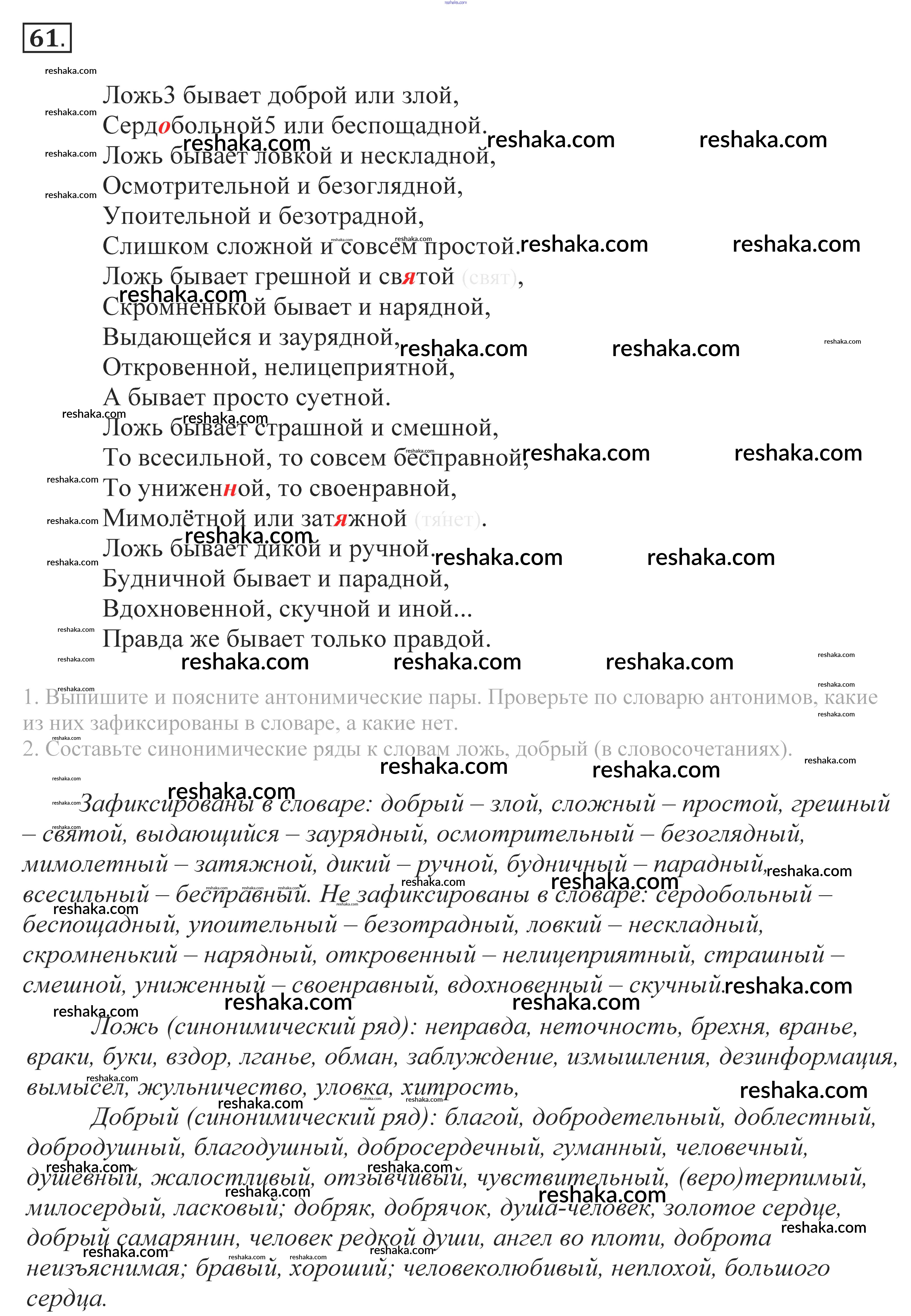 Решака - онлайн ответы Русский язык Власенков, Рыбченкова за 10-11 класс Учебник Базовый уровень 2014 - 61
