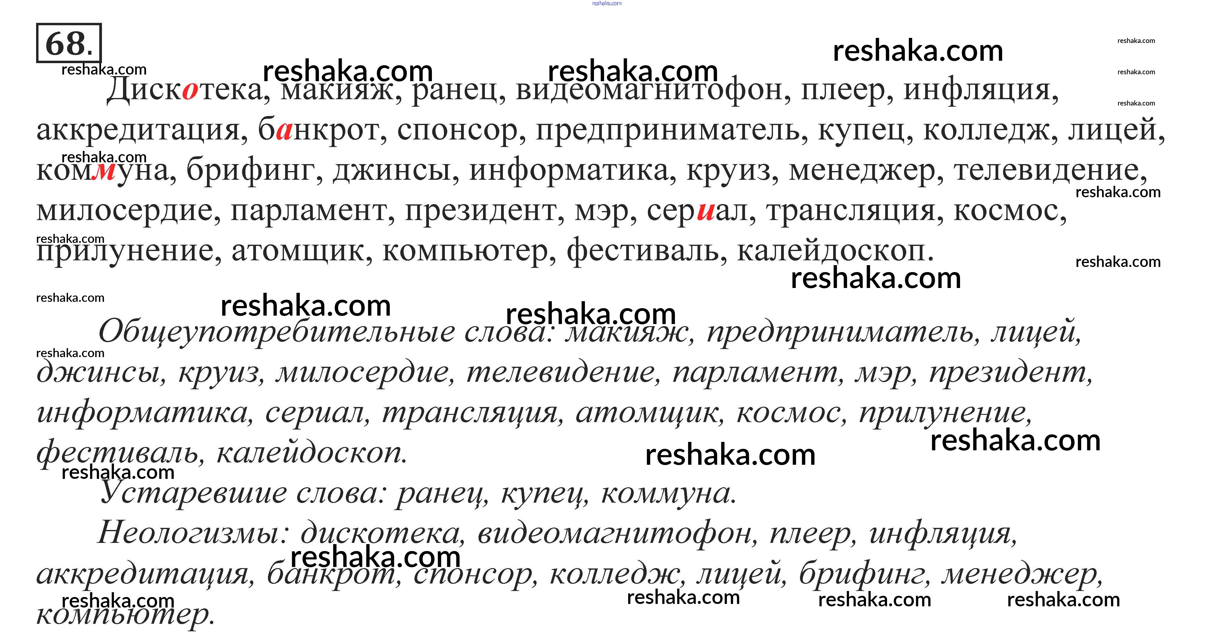 Решака - онлайн ответы Русский язык Власенков, Рыбченкова за 10-11 класс Учебник Базовый уровень 2014 - 68