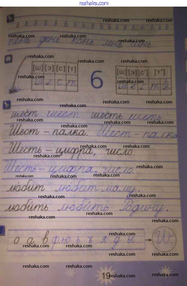 Решака - онлайн ответы Русский язык Агаркова за 1 класс Тетрадь по письму ФГОС 2019 - 19