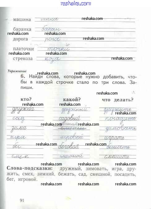 Представляем вам сборники по Русскому языку, с готовыми ответами к Рабочей тетради Иванов школьной программы для учеников первый класса. Это не просто гдз с ответом, а с подсказками, как верно решить Тетрадь №1. Страницы 91. Проверяй домашку с умом и получай высший балл!