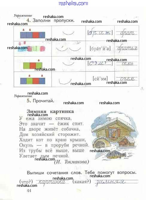Представляем вам сборники по Русскому языку, с готовыми ответами к Рабочей тетради Иванов школьной программы для учеников первый класса. Это не просто гдз с ответом, а с подсказками, как верно решить Тетрадь №2. Страницы 44. Проверяй домашку с умом и получай высший балл!