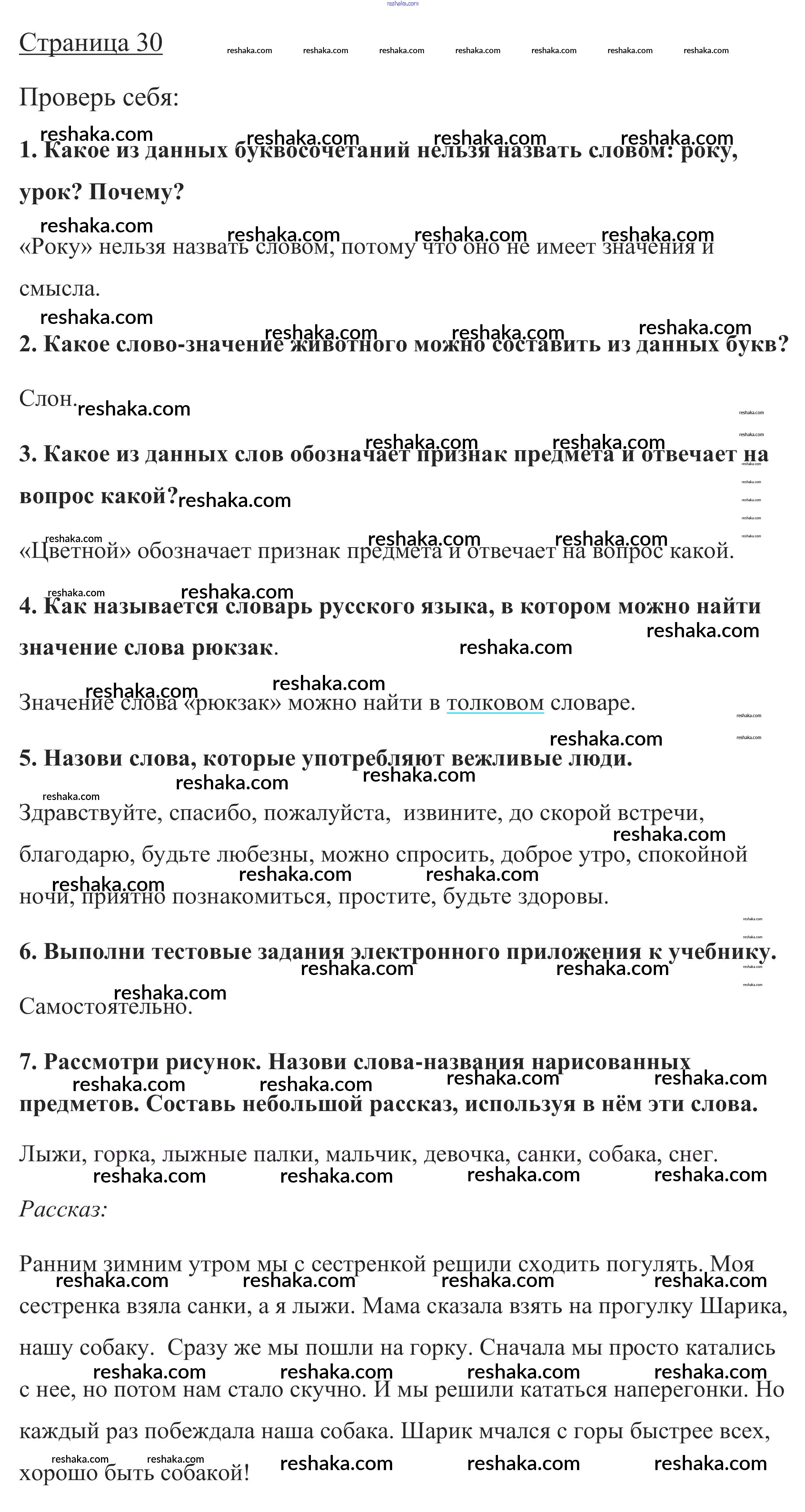 Решака - онлайн ответы Русский язык Канакина, Горецкий за 1 класс Учебник ФГОС 2013 - стр. 30