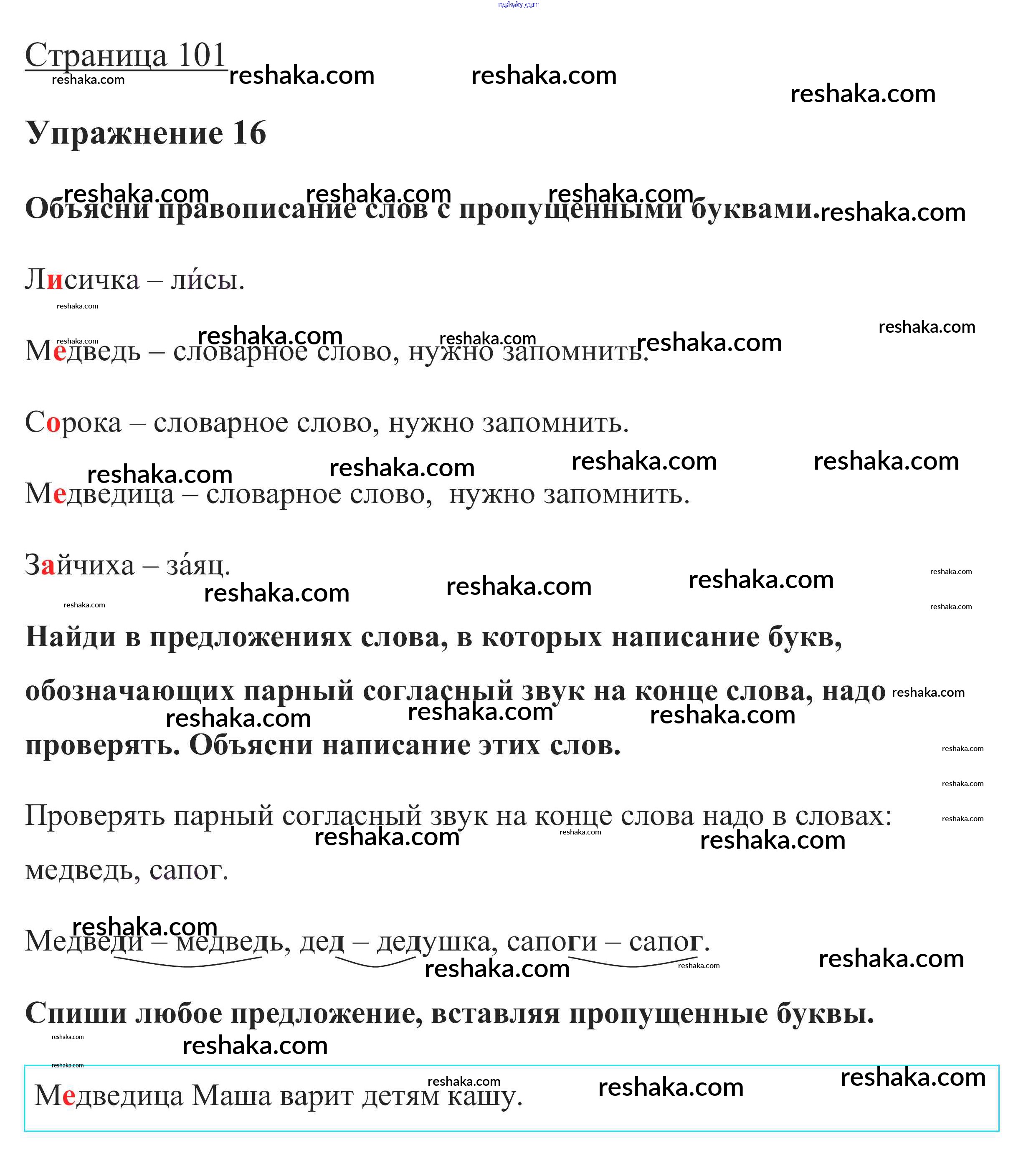Решака - онлайн ответы Русский язык Канакина, Горецкий за 1 класс Учебник ФГОС 2013 - стр. 101