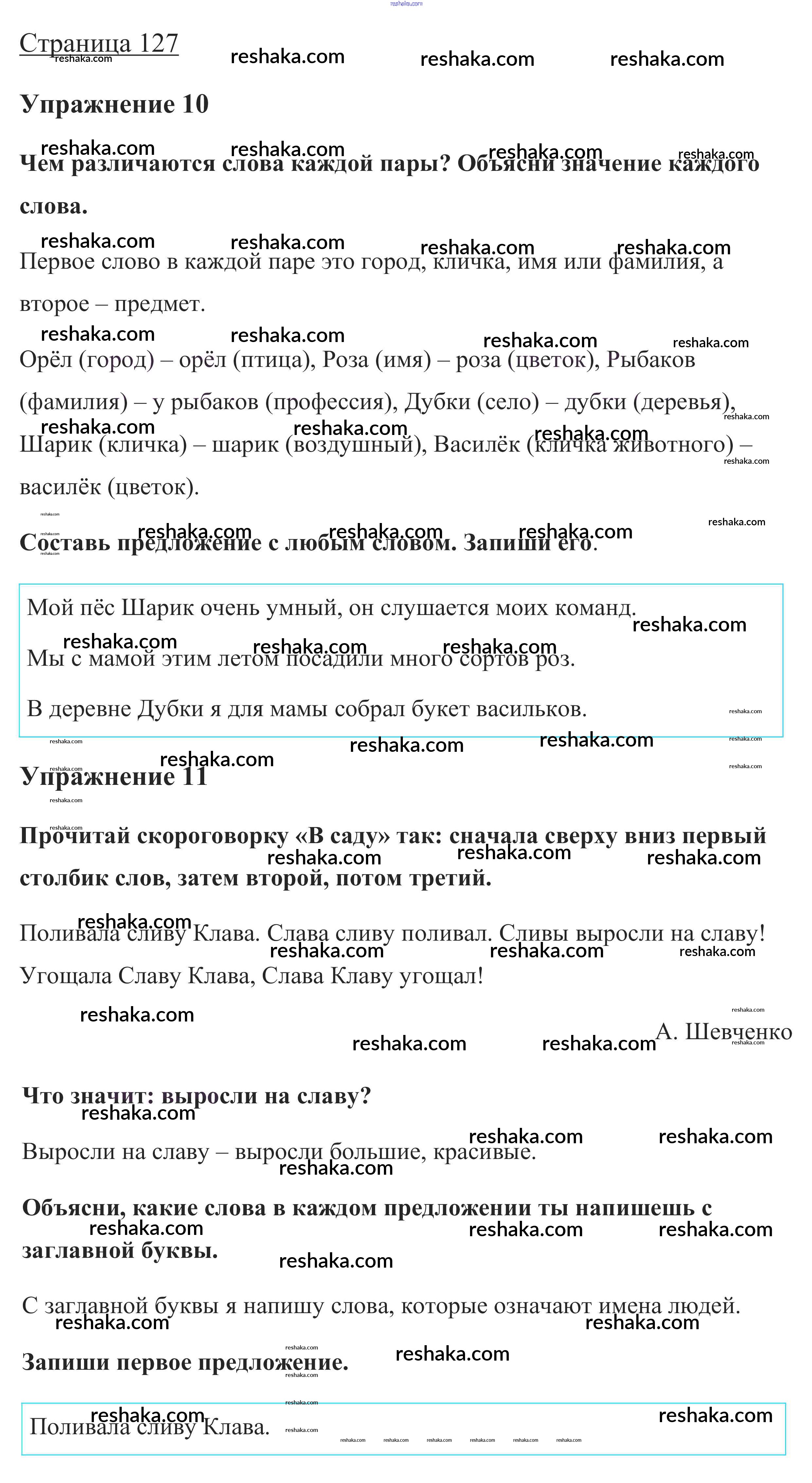 Решака - онлайн ответы Русский язык Канакина, Горецкий за 1 класс Учебник ФГОС 2013 - стр. 127
