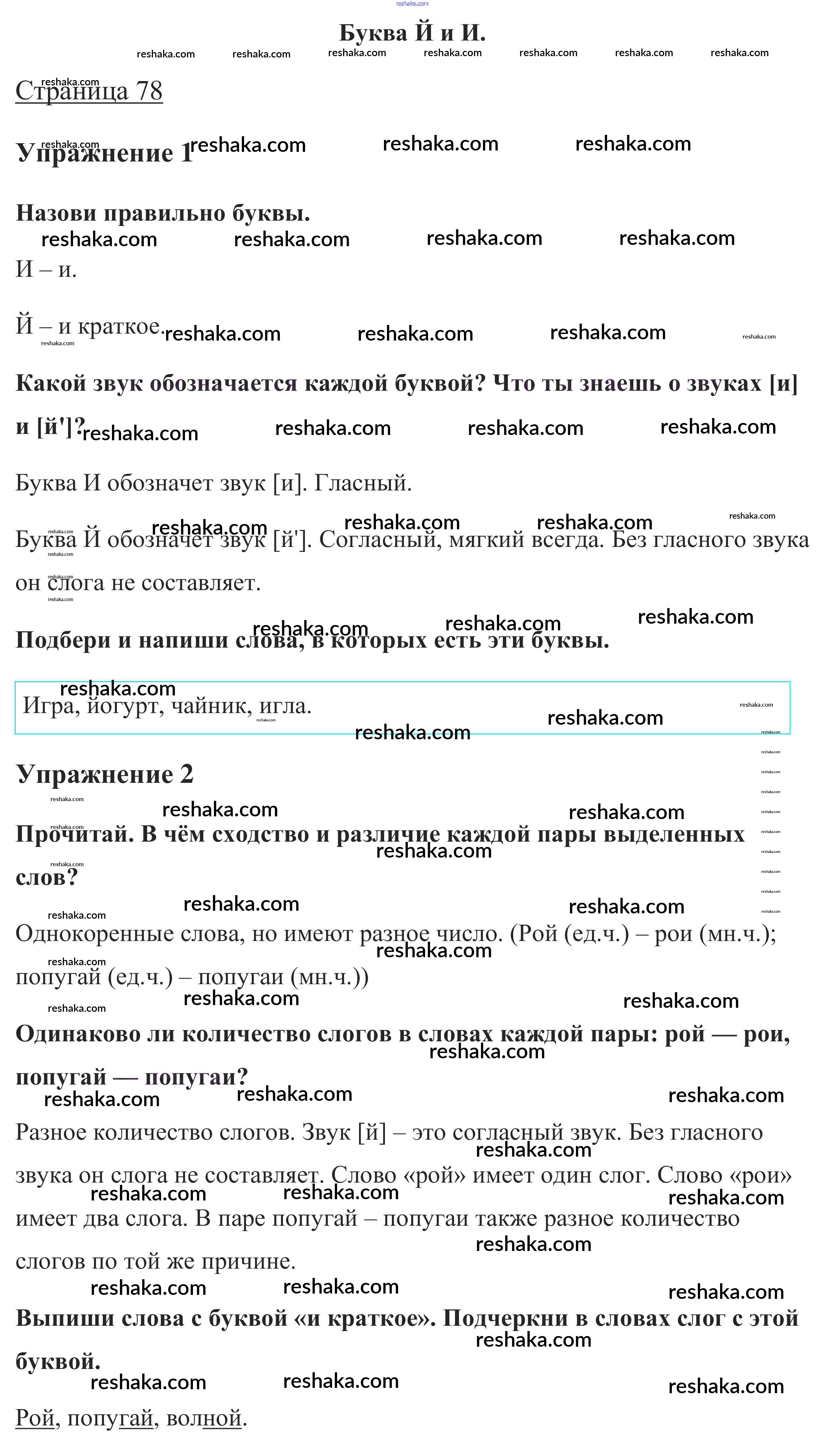 Решака - онлайн ответы Русский язык Канакина, Горецкий за 1 класс Учебник ФГОС 2013 - стр. 78