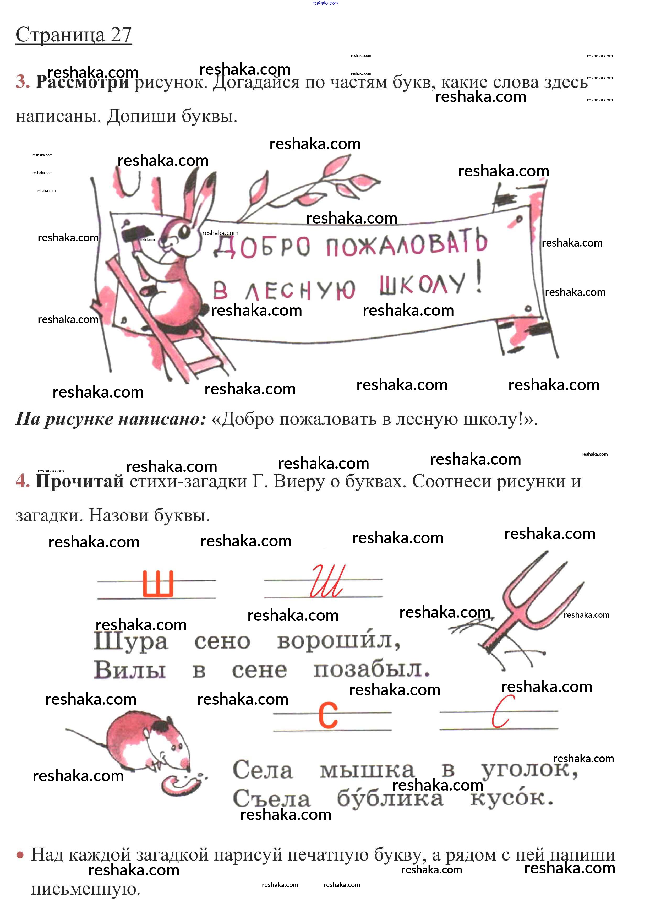 Решака - онлайн ответы Русский язык Канакина, Горецкий за 1 класс Рабочая тетрадь ФГОС 2013 - стр. 27
