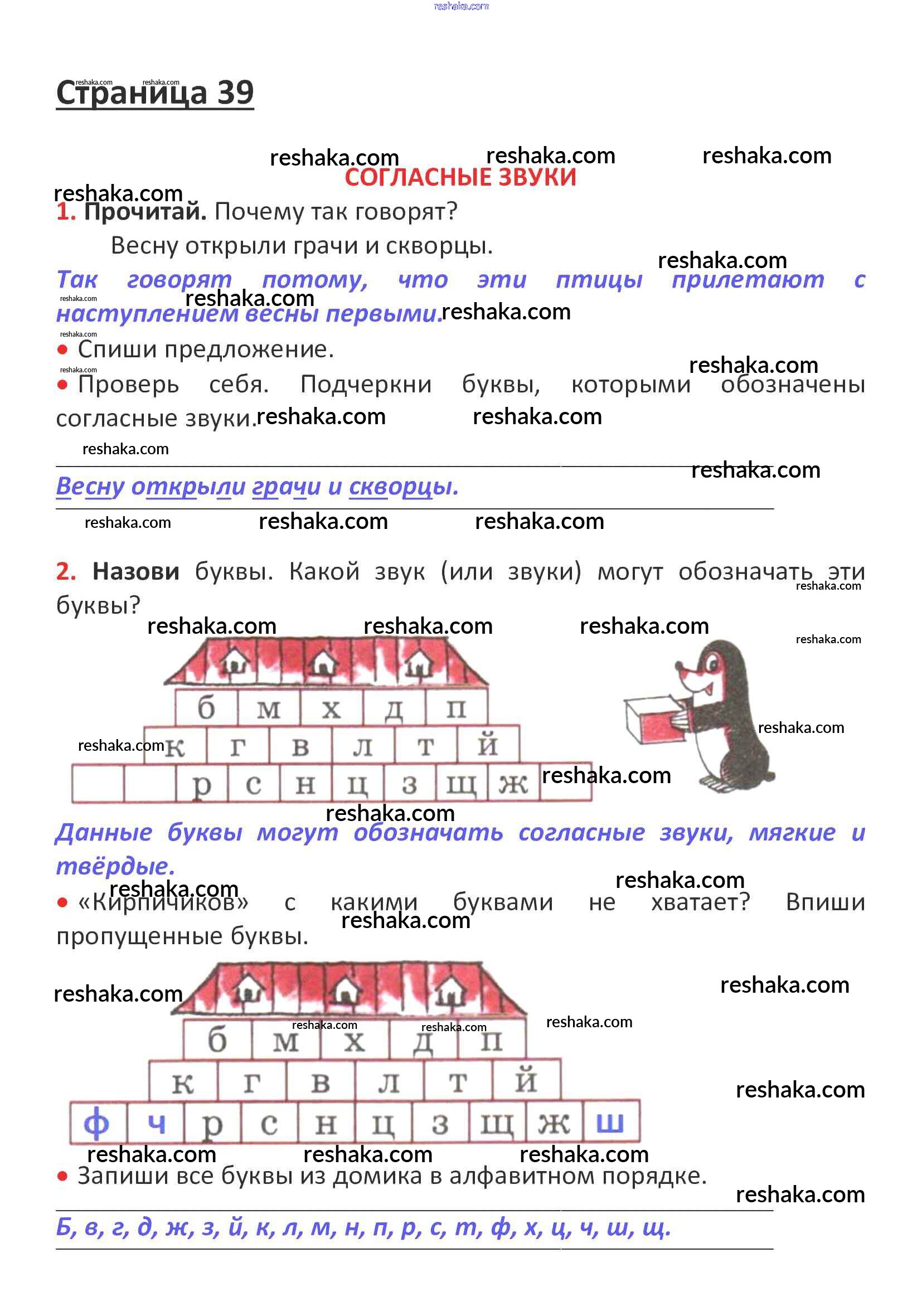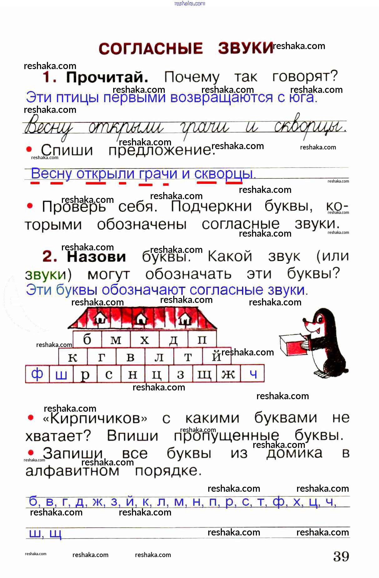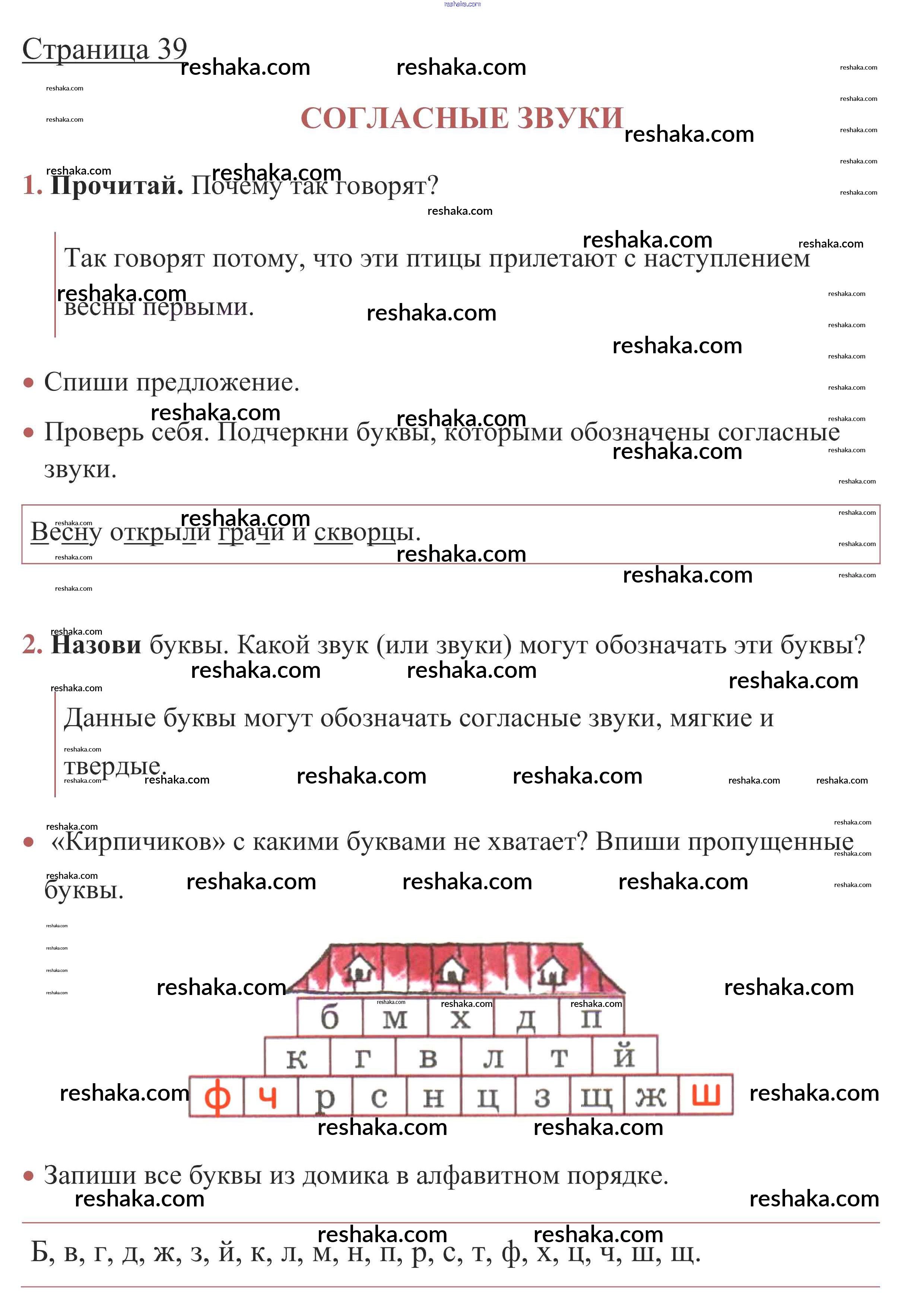 Решака - онлайн ответы Русский язык Канакина, Горецкий за 1 класс Рабочая тетрадь ФГОС 2013 - стр. 39