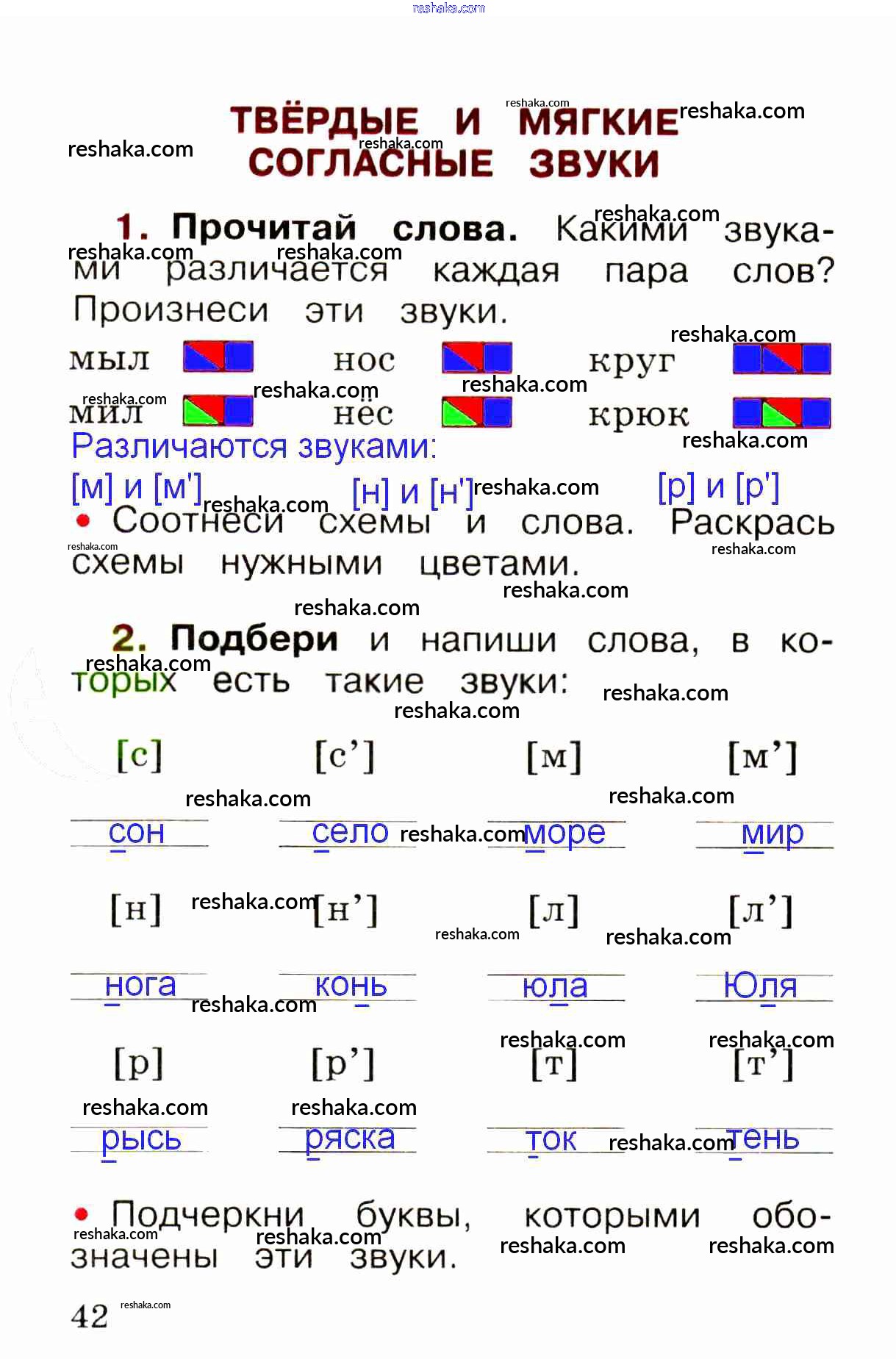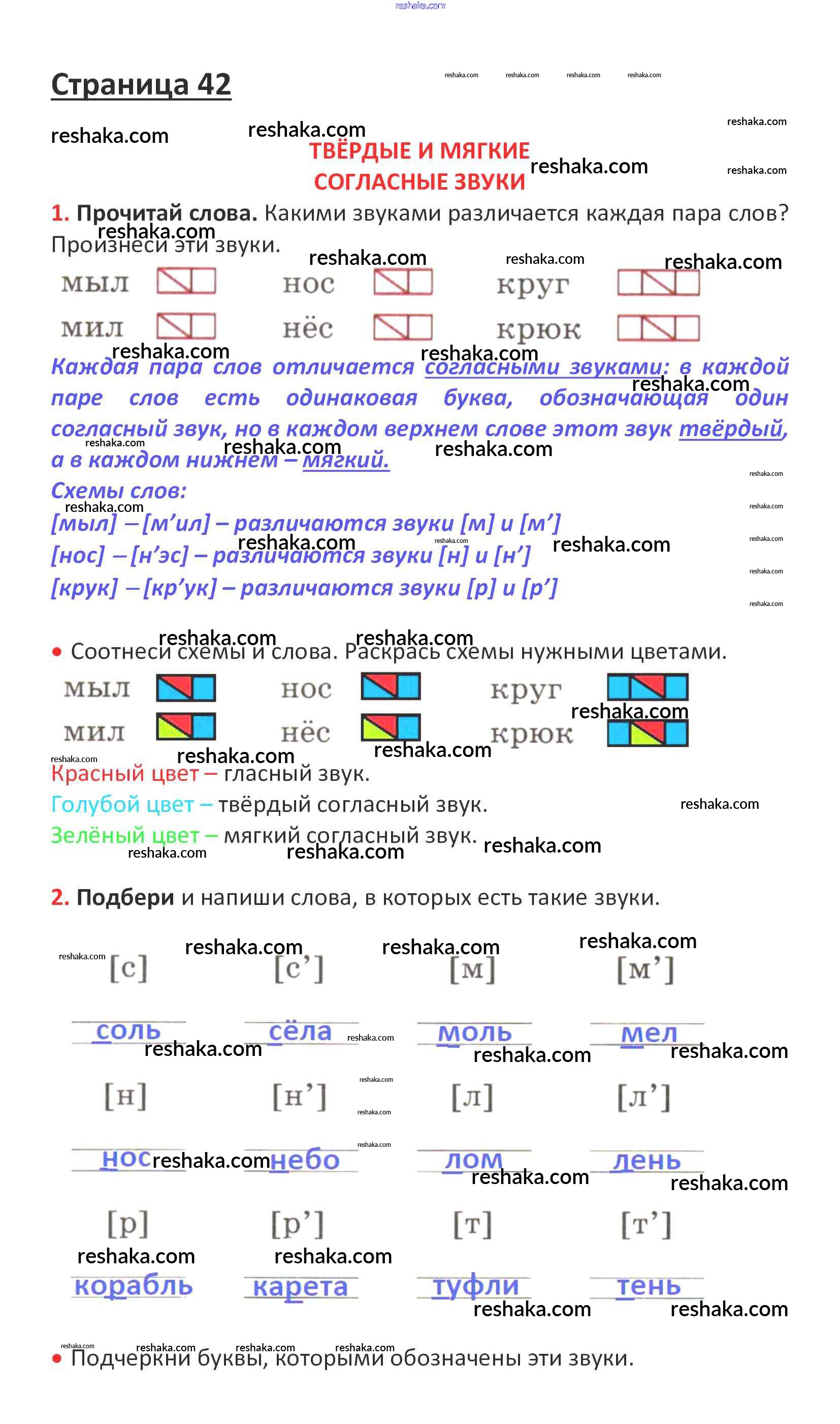 Решака - онлайн ответы Русский язык Канакина, Горецкий за 1 класс Рабочая тетрадь ФГОС 2013 - стр. 42