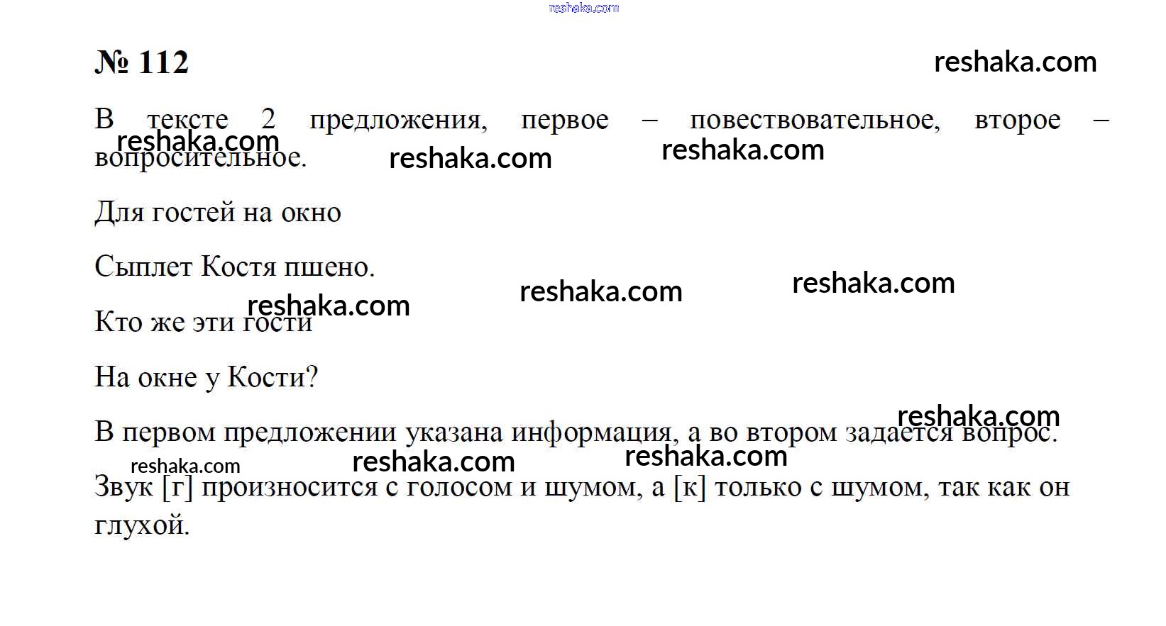 Решака - онлайн ответы Русский язык Рамзаева за 1 класс Учебник ФГОС 2014 - 112